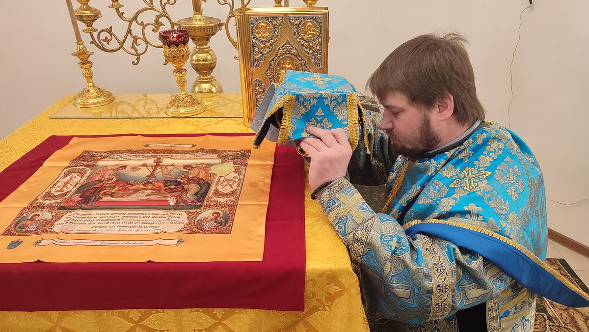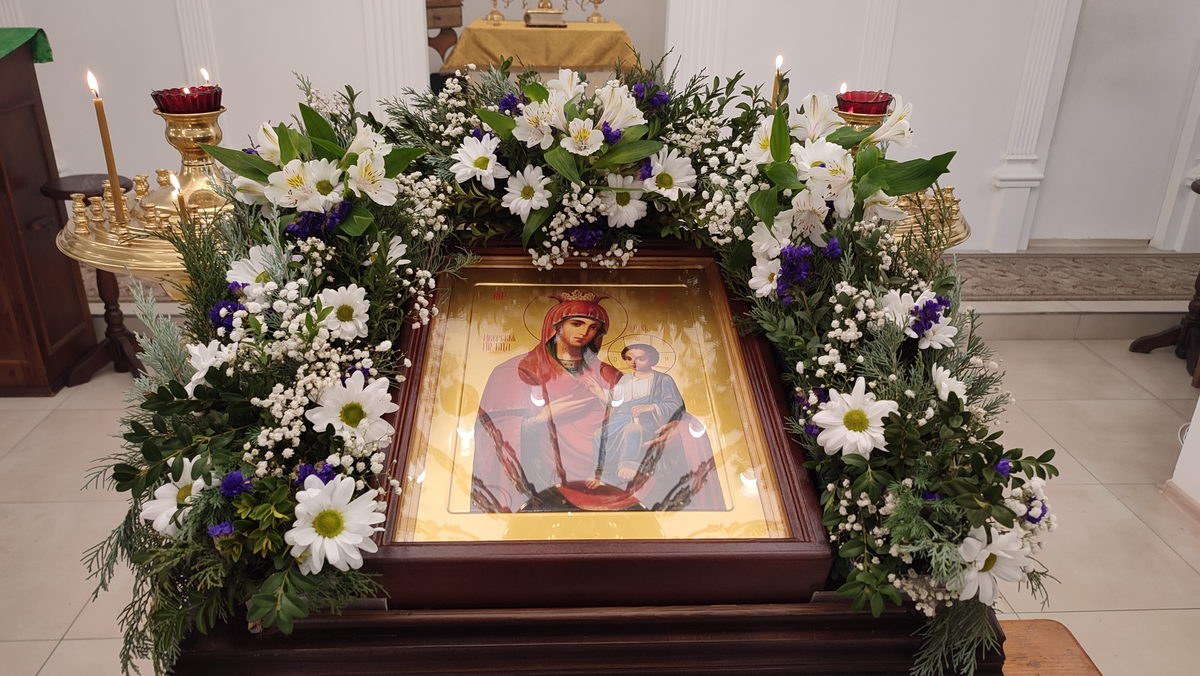По окончании Литургии было совершено славление Иверской иконе Божией Матери и прочитана молитва Богородице.