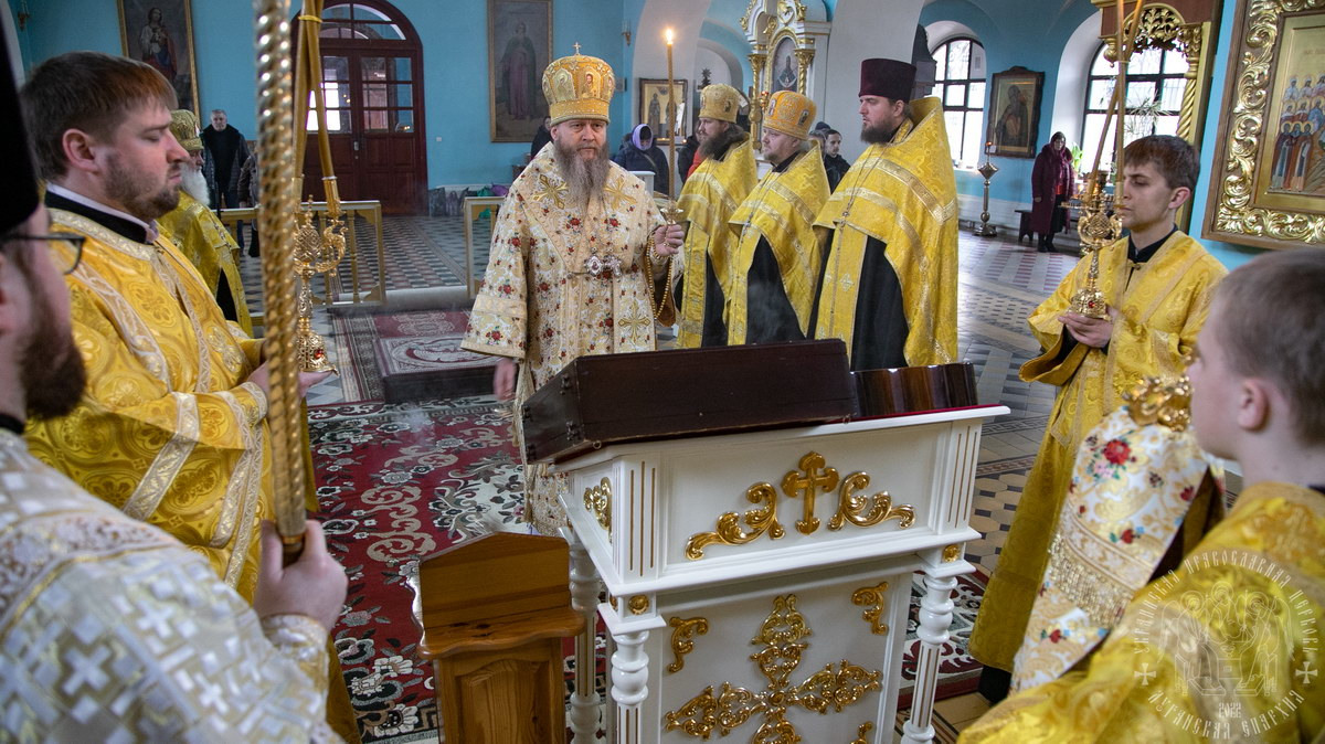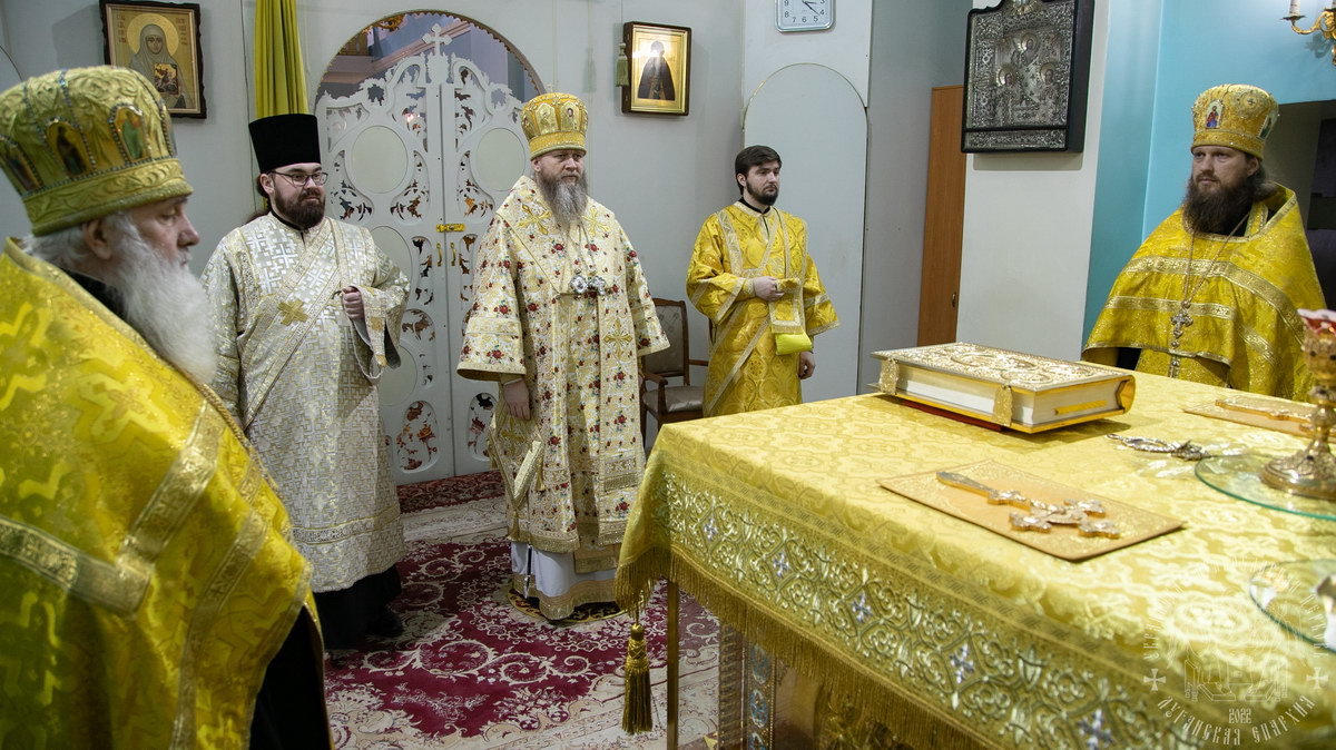 После сугубой ектении владыка вознес молитву о мире и умножении любви среди народа Отечества нашего и молитву «во время распространения вредоносного поветрия».