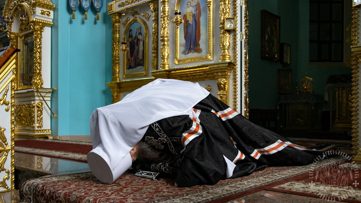 По традиции, после пения Великого прокимна и закрытия Царских врат, духовенство переоблачилось в великопостные черные ризы.