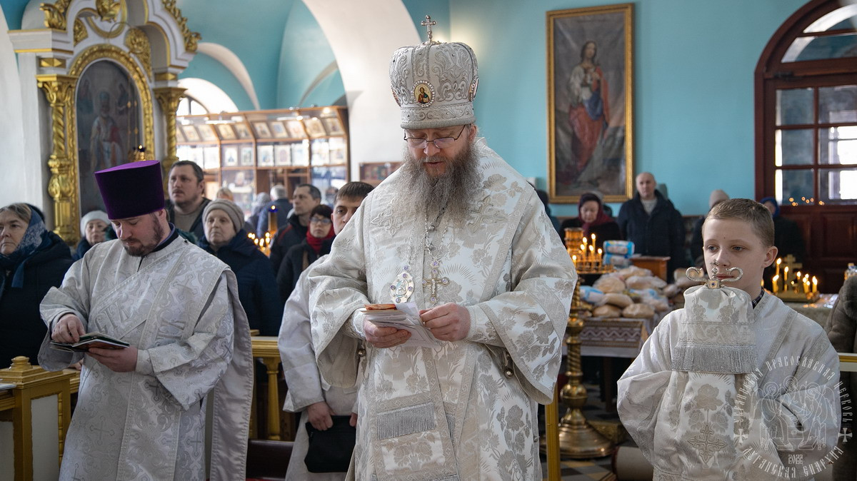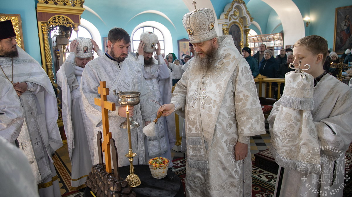 После сугубой ектении владыка вознес молитву о мире и умножении любви среди народа Отечества нашего и молитву «во время распространения вредоносного поветрия».