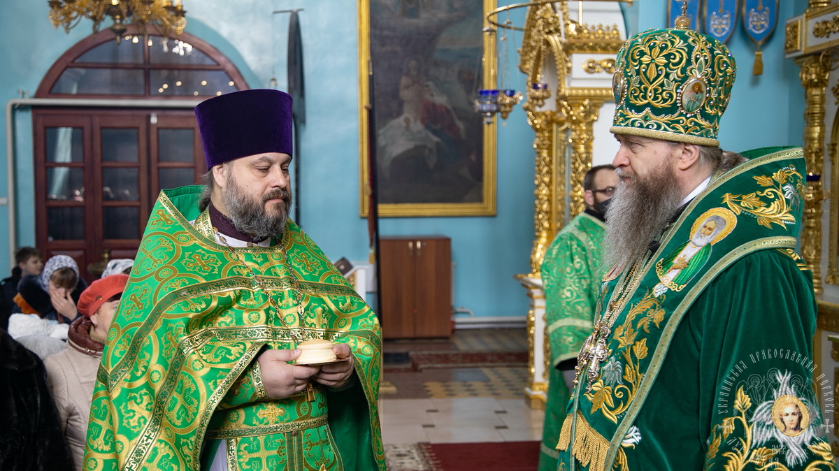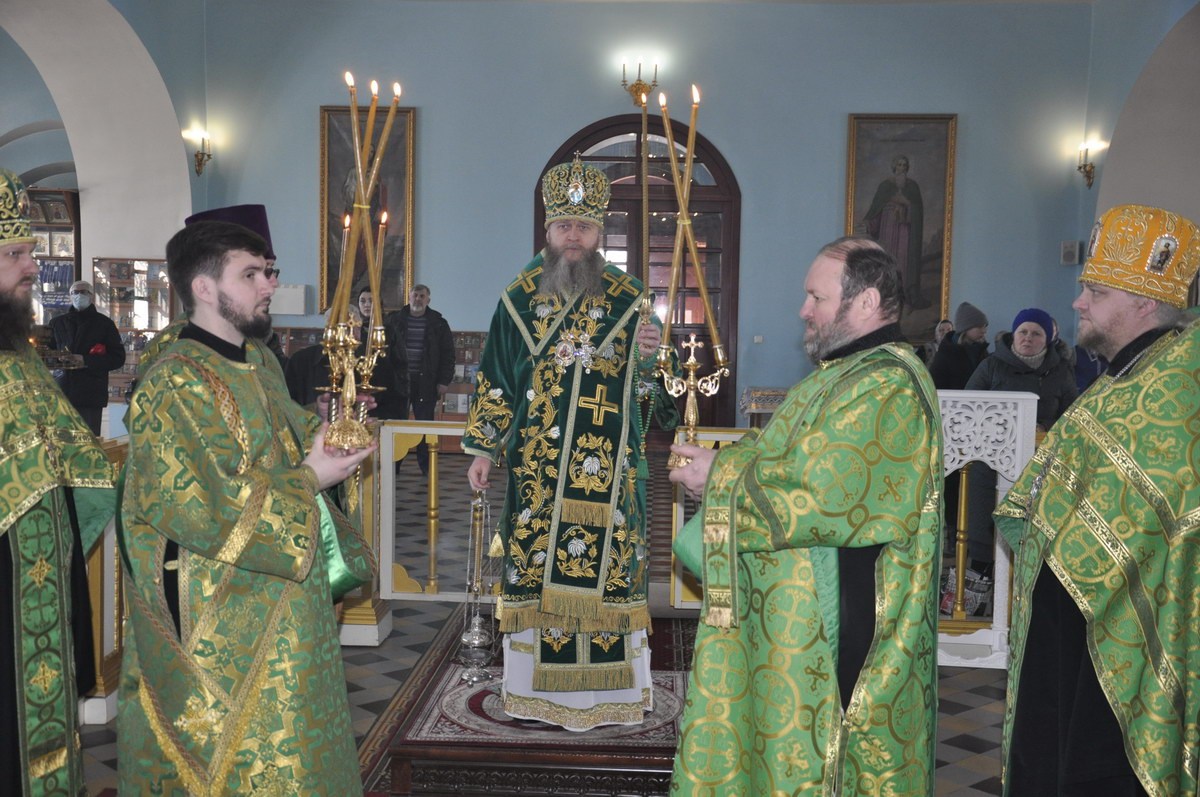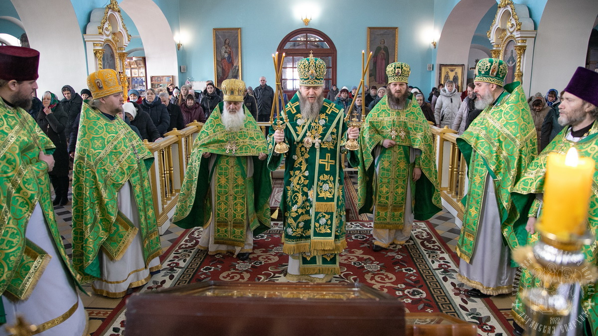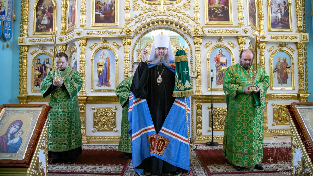После сугубой ектении владыка вознес молитву о мире и умножении любви среди народа Отечества нашего и молитву «во время распространения вредоносного поветрия».