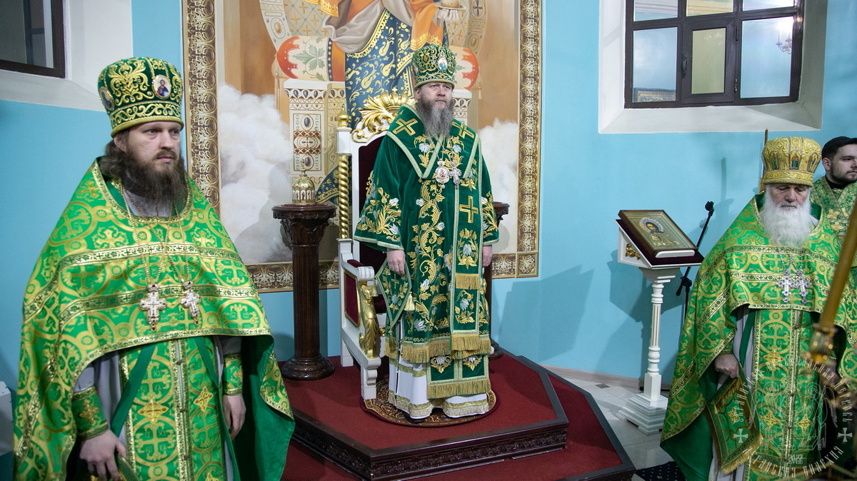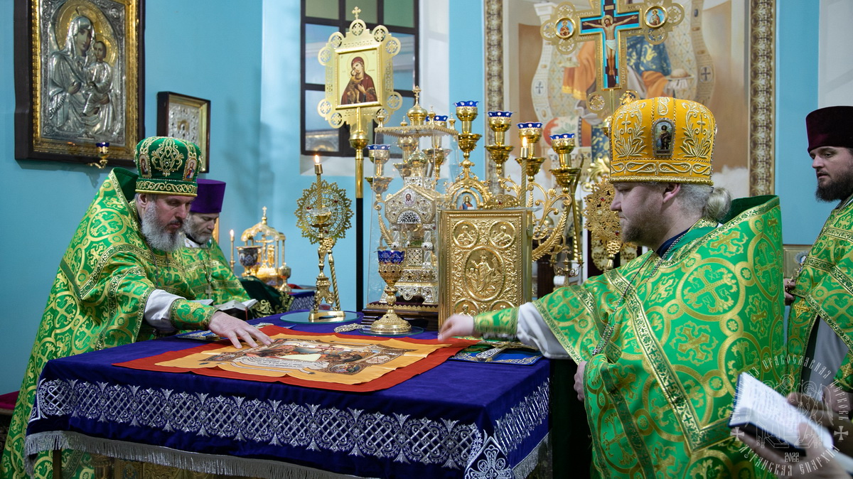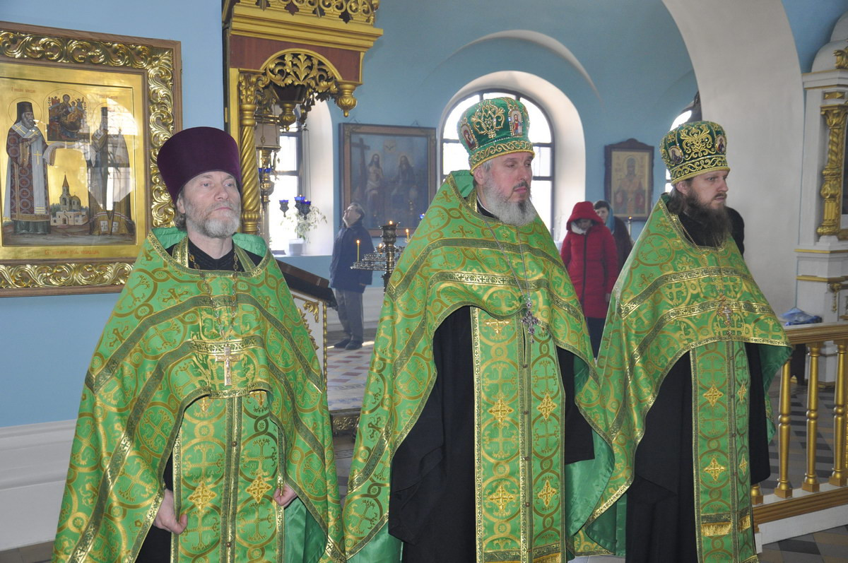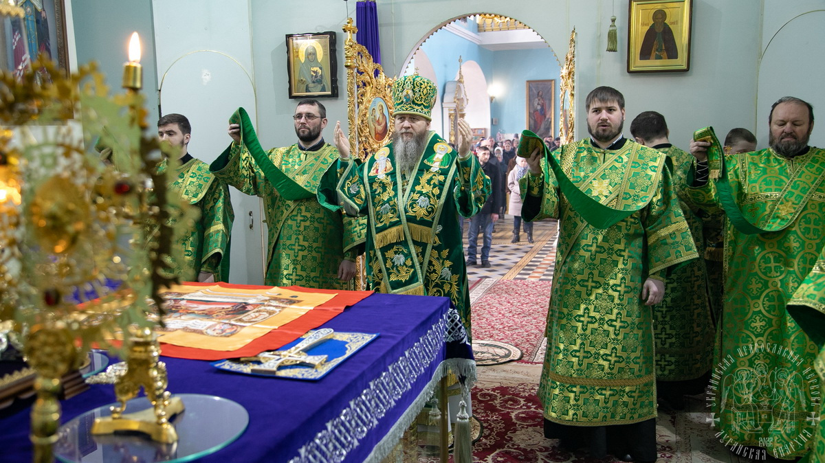 После сугубой ектении владыка вознес молитву о мире и умножении любви среди народа Отечества нашего и молитву «во время распространения вредоносного поветрия».