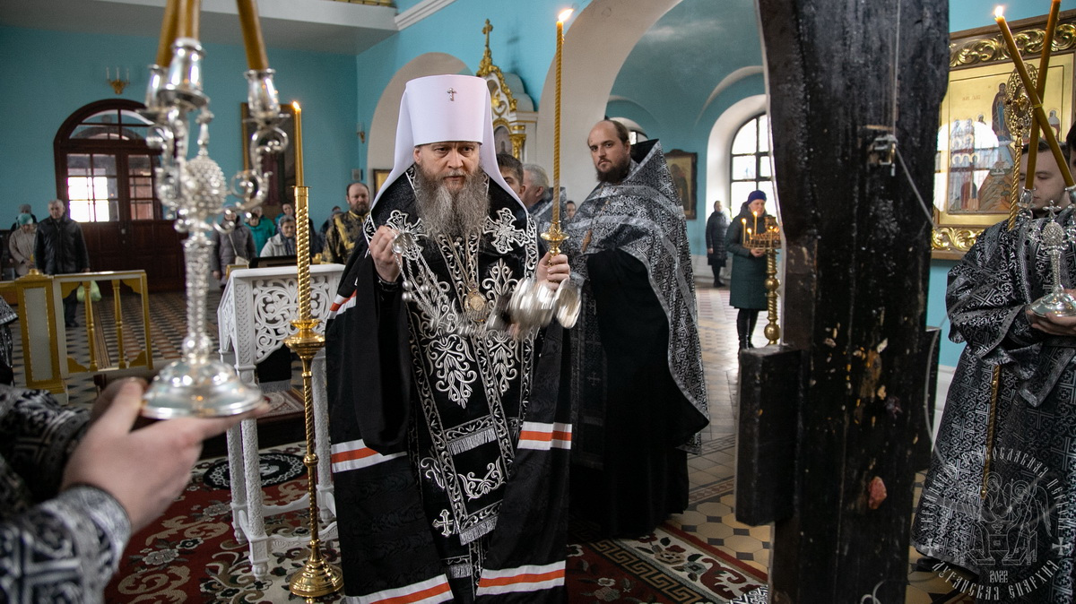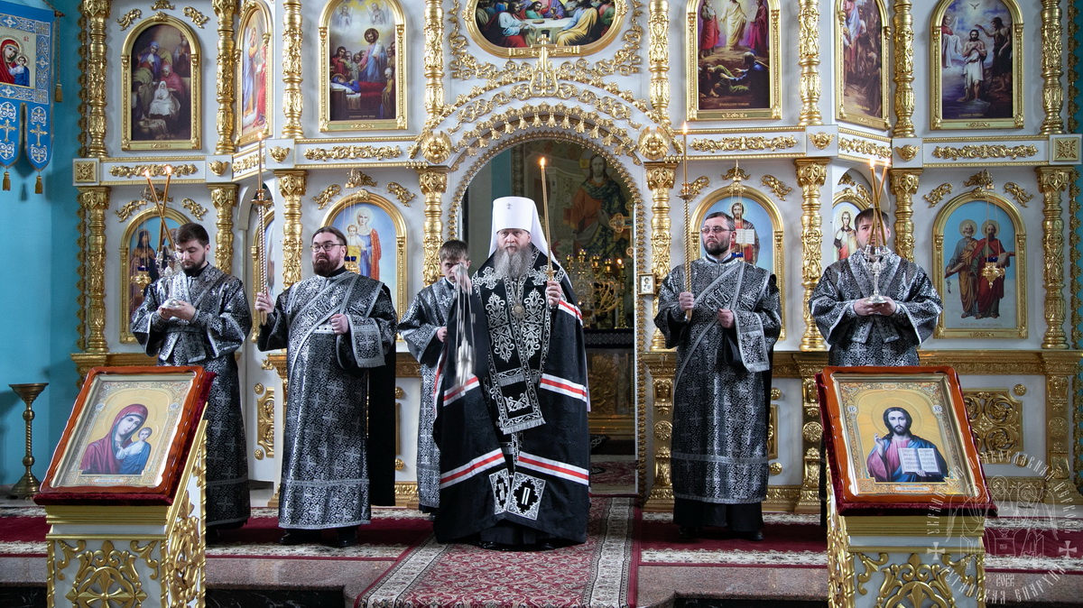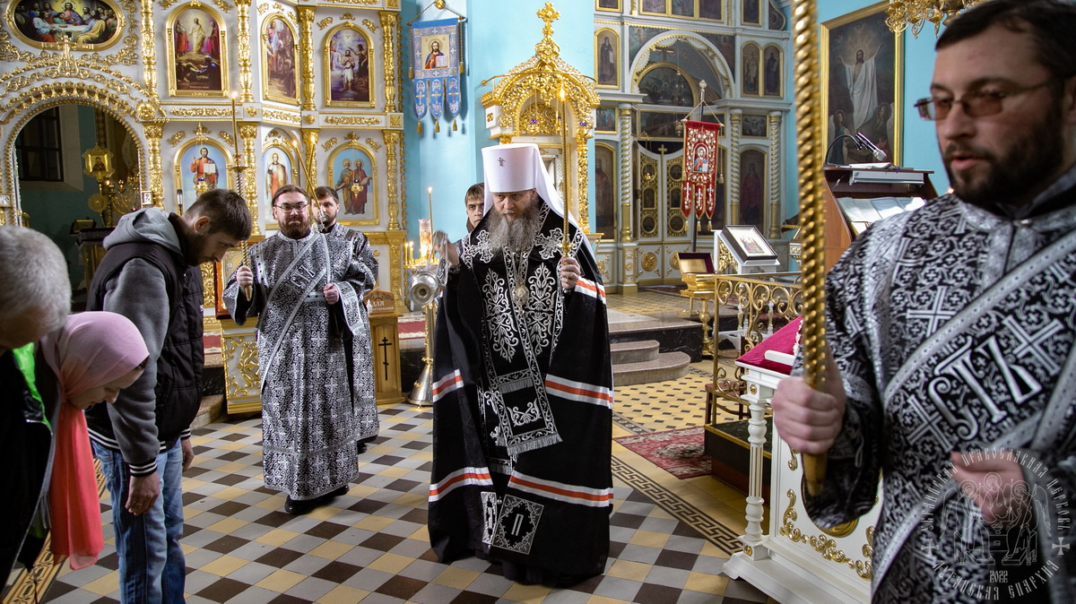 После акафиста, владыка Пантелеимон прочел главы из Евангелия, повествующие о спасительных страданиях Господа нашего Иисуса Христа.