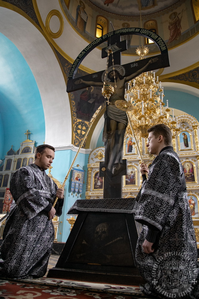 27 марта, Высокопреосвященнейший Пантелеимон, митрополит Луганский и Алчевский, в сослужении соборного духовенства совершил второе чинопоследование Пассии в Свято-Петропавловском кафедральном соборе.