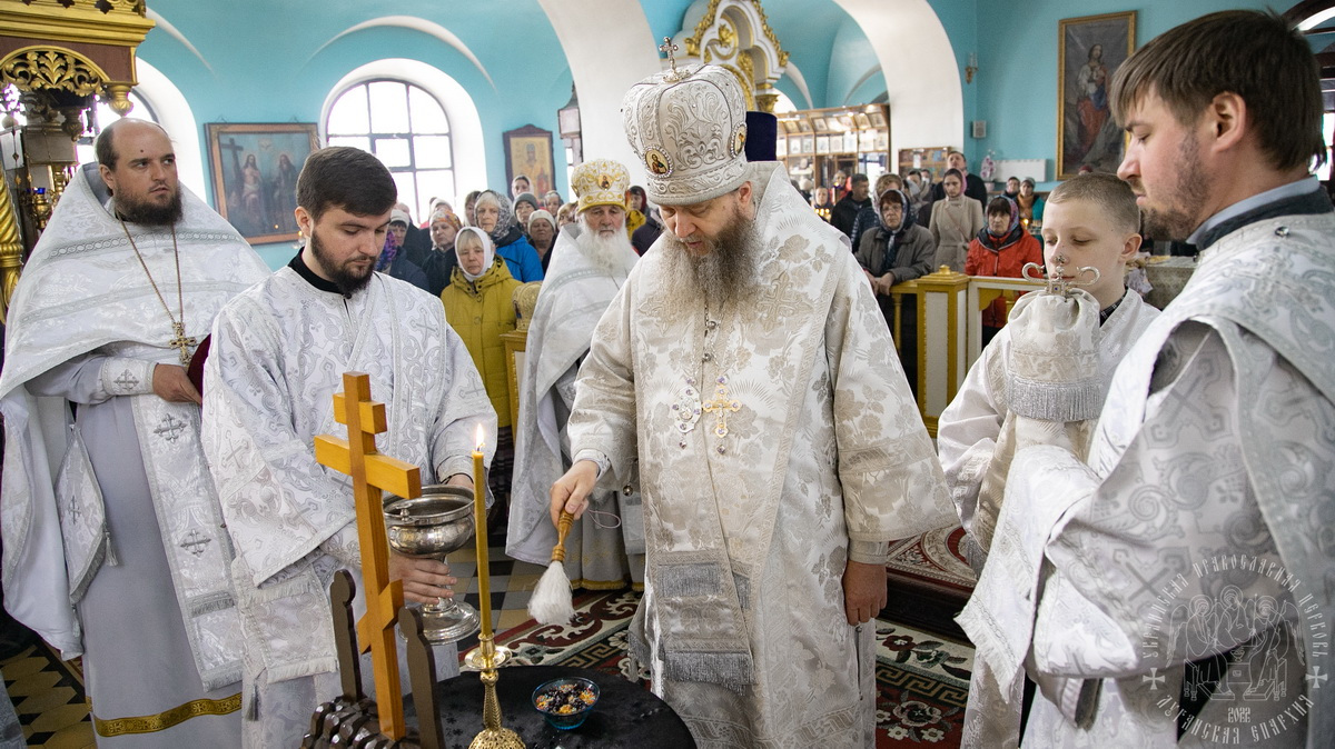 После сугубой ектении владыка вознес молитву о мире и умножении любви среди народа Отечества нашего и молитву «во время распространения вредоносного поветрия».