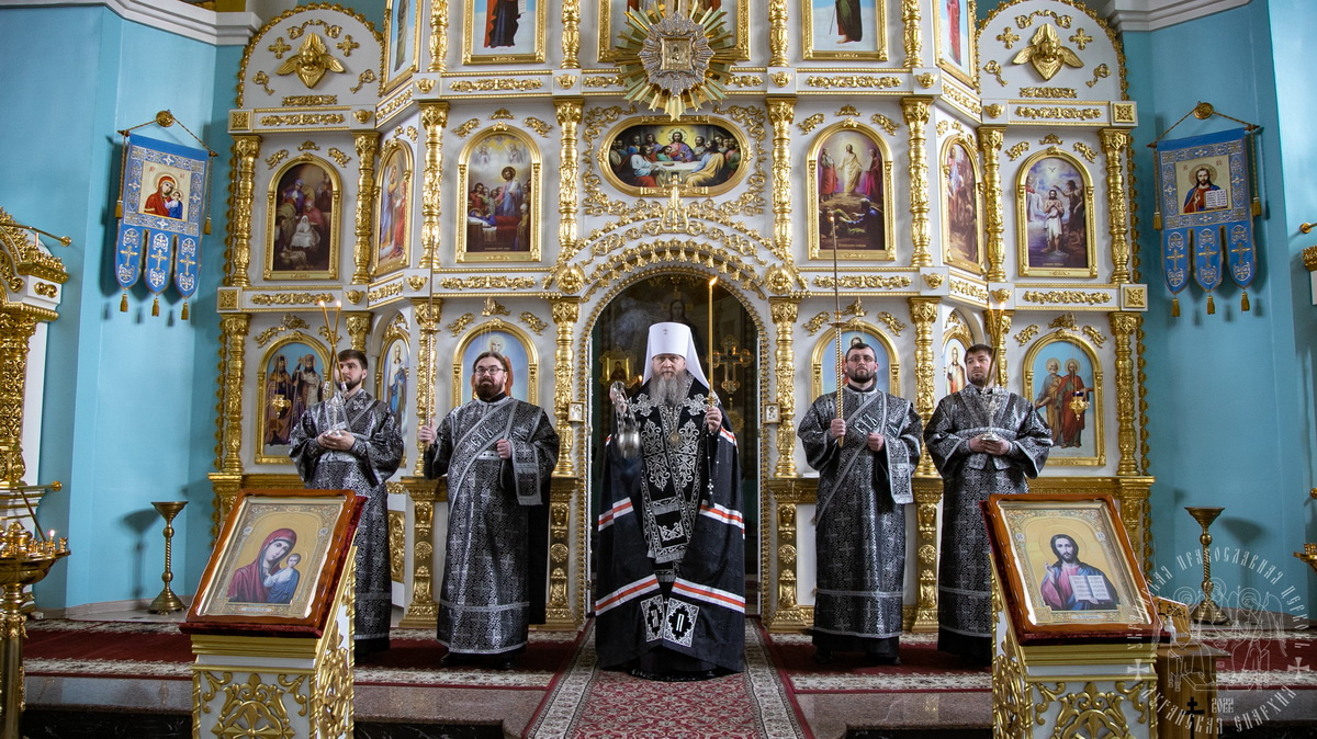 После акафиста, владыка Пантелеимон прочел главы из Евангелия, повествующие о спасительных страданиях Господа нашего Иисуса Христа.