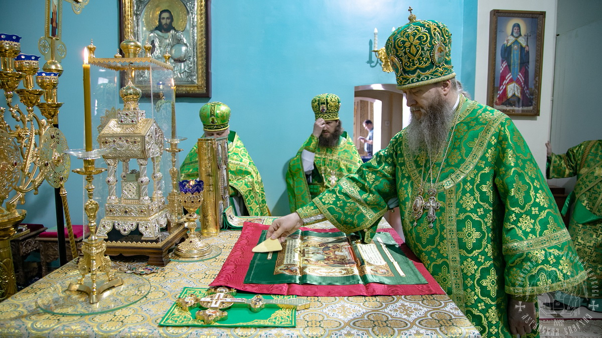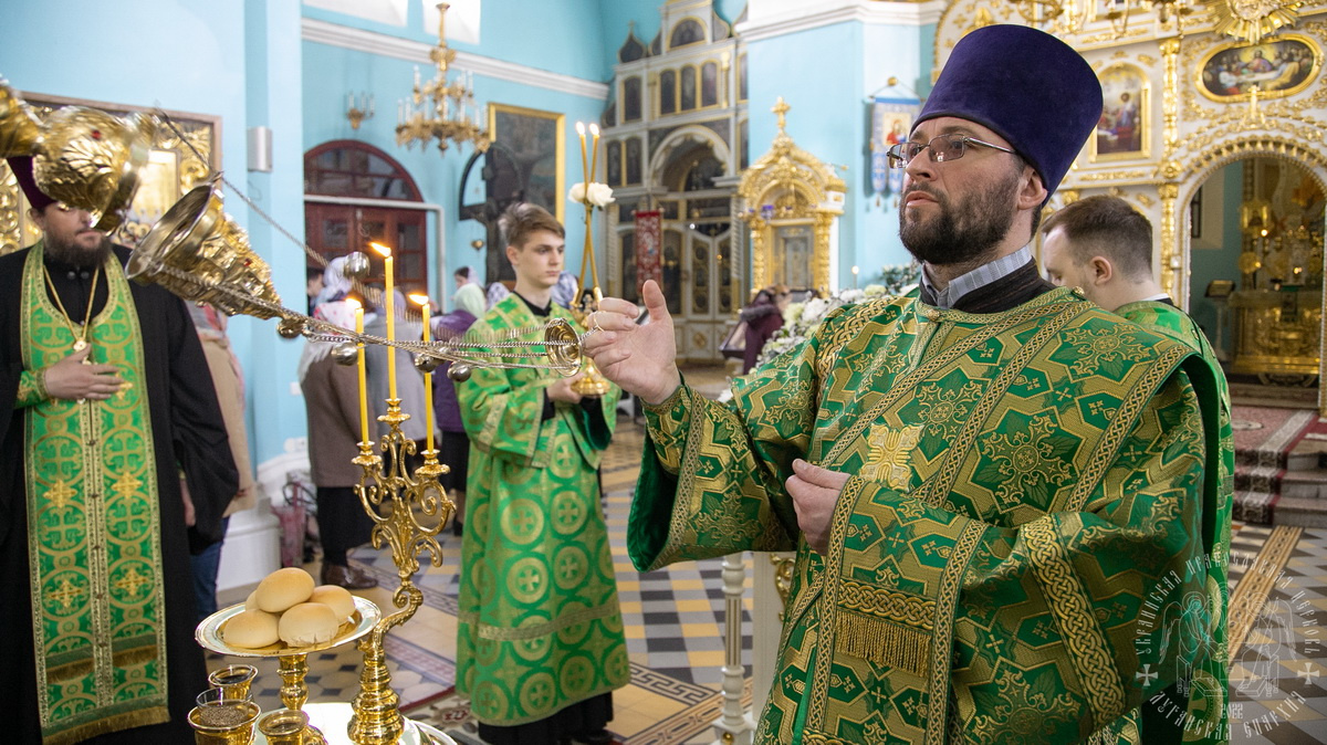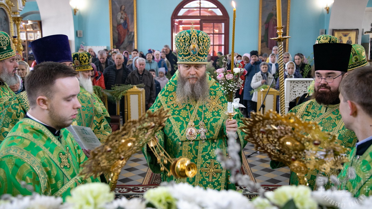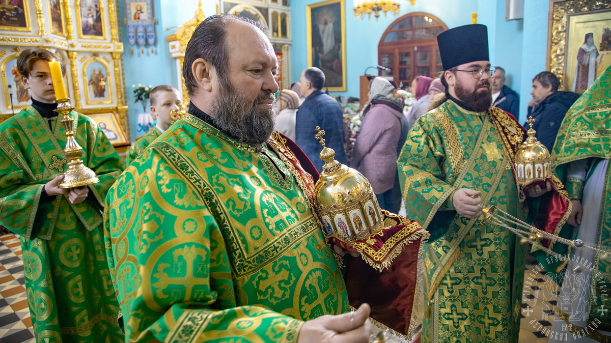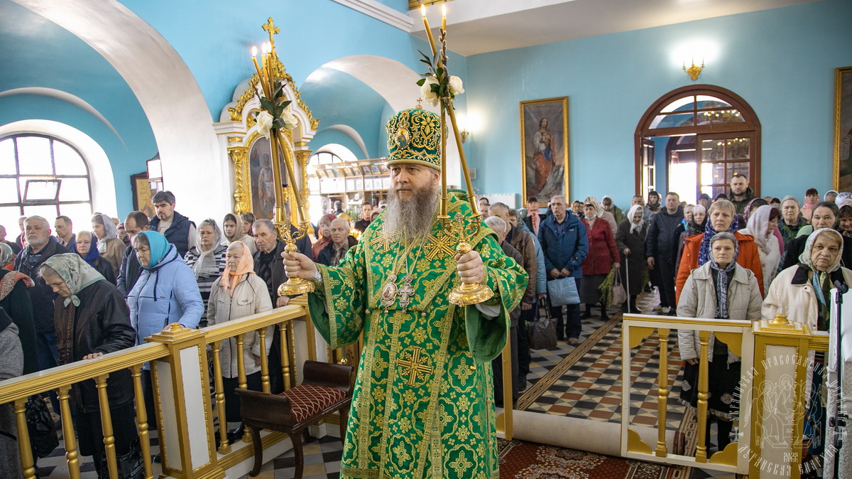 После сугубой ектении владыка вознес молитву о Церкви, о мире и умножении любви среди народа Отечества нашего и молитву «во время распространения вредоносного поветрия».