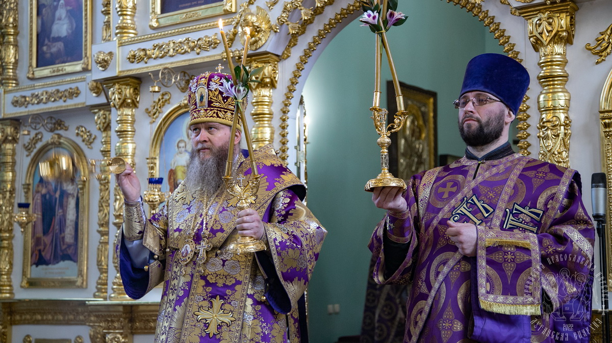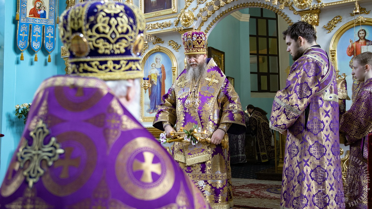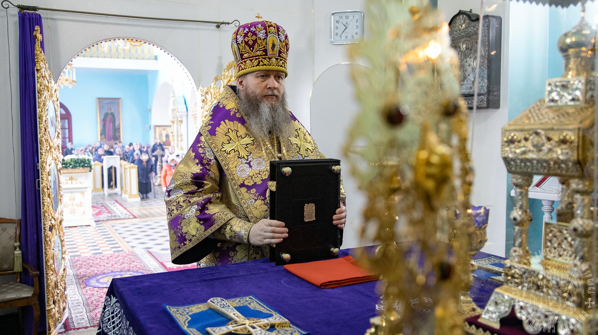 После сугубой ектении Литургии, владыка вознес молитву о Церкви, мире и умножении любви среди народа Отечества нашего и молитву «во время распространения вредоносного поветрия».