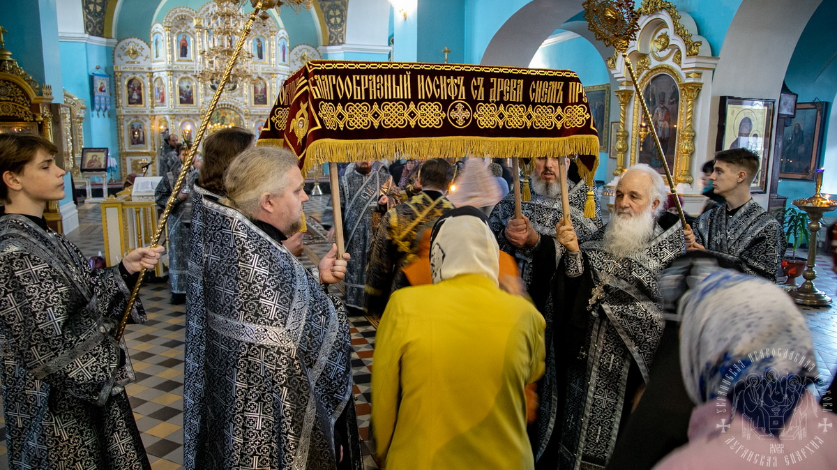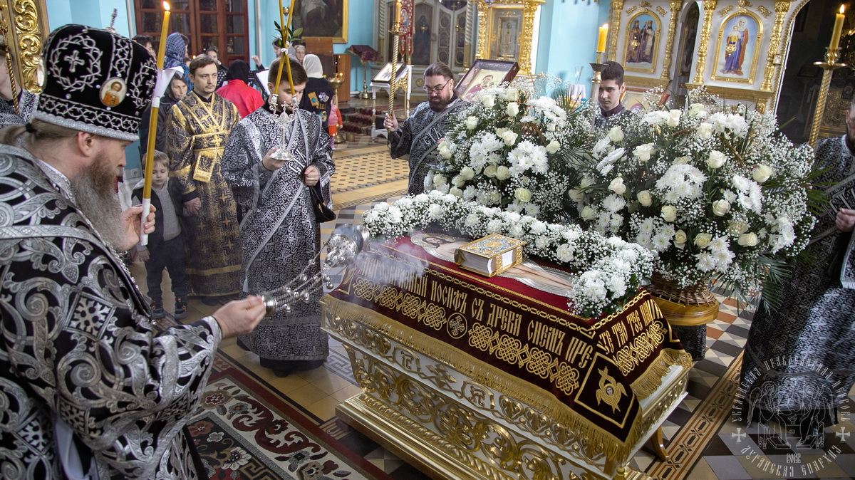 Вечером 22 апреля, Высокопреосвященнейший Пантелеимон, митрополит Луганский и Алчевский, совершил Вечерню с выносом Плащаницы и Утреню Великой Субботы с чином погребения Плащаницы в Свято-Петропавловском кафедральном соборе.