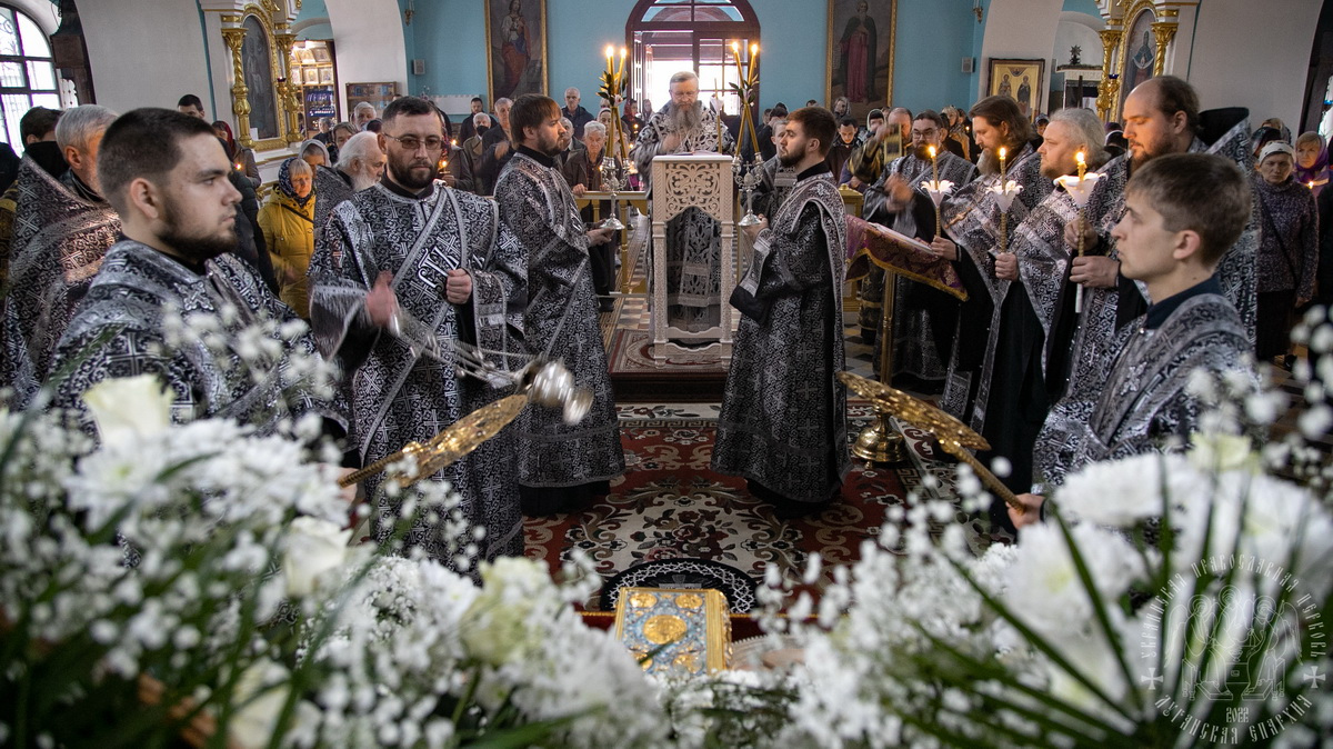 Перед Плащаницей были прочитаны пророчество о воскресении из книги пророка Иезекииля (Иез. 37:1-14), чтение из Апостола об искупительной Жертве, принесенной Христом (1 Кор. 6:7-8), а затем владыка Пантелеимон прочел евангельское зачало о запечатании гроба Господня и приставлении к нему стражи (Мф. 27:62-66).