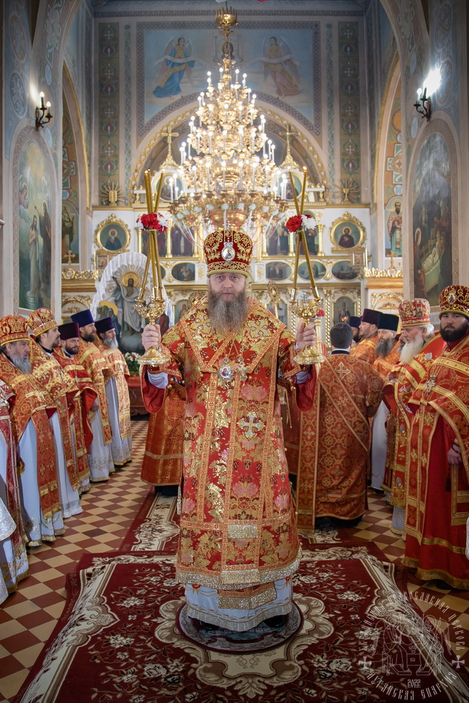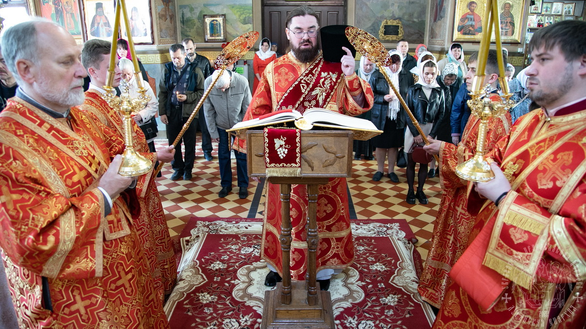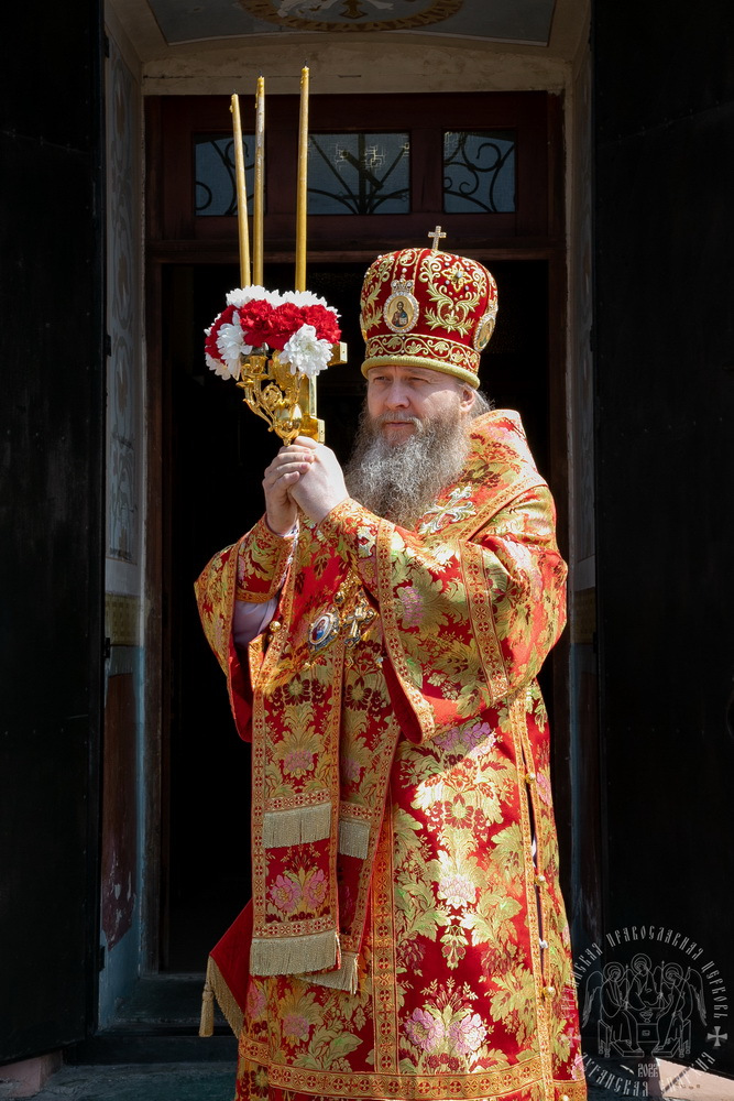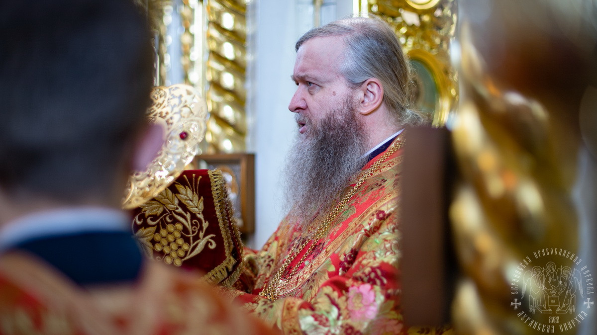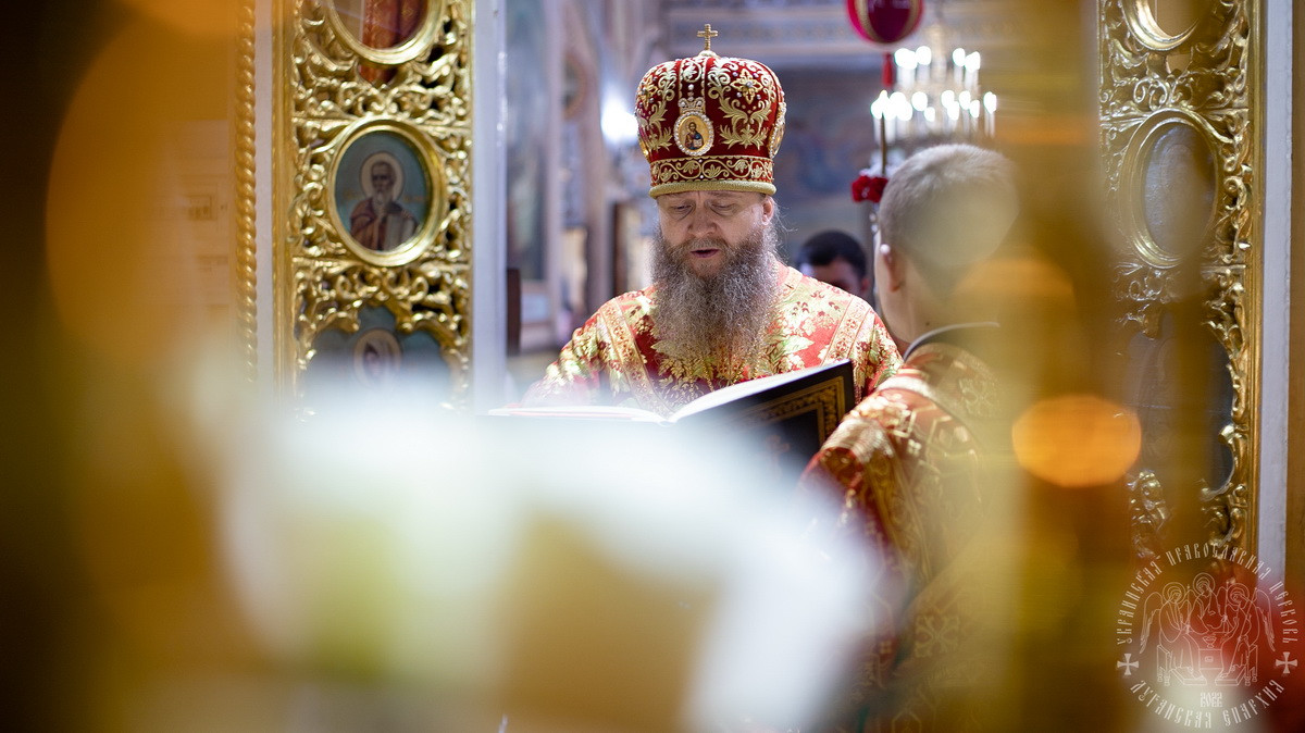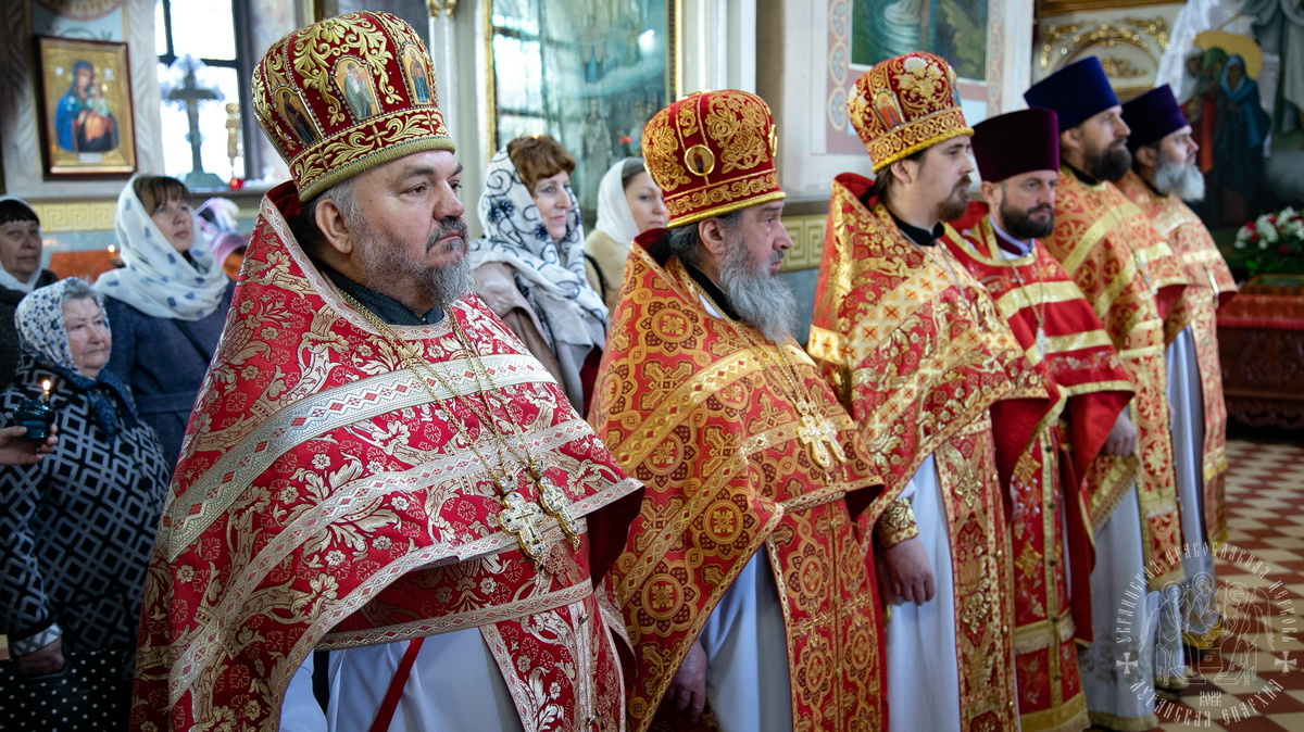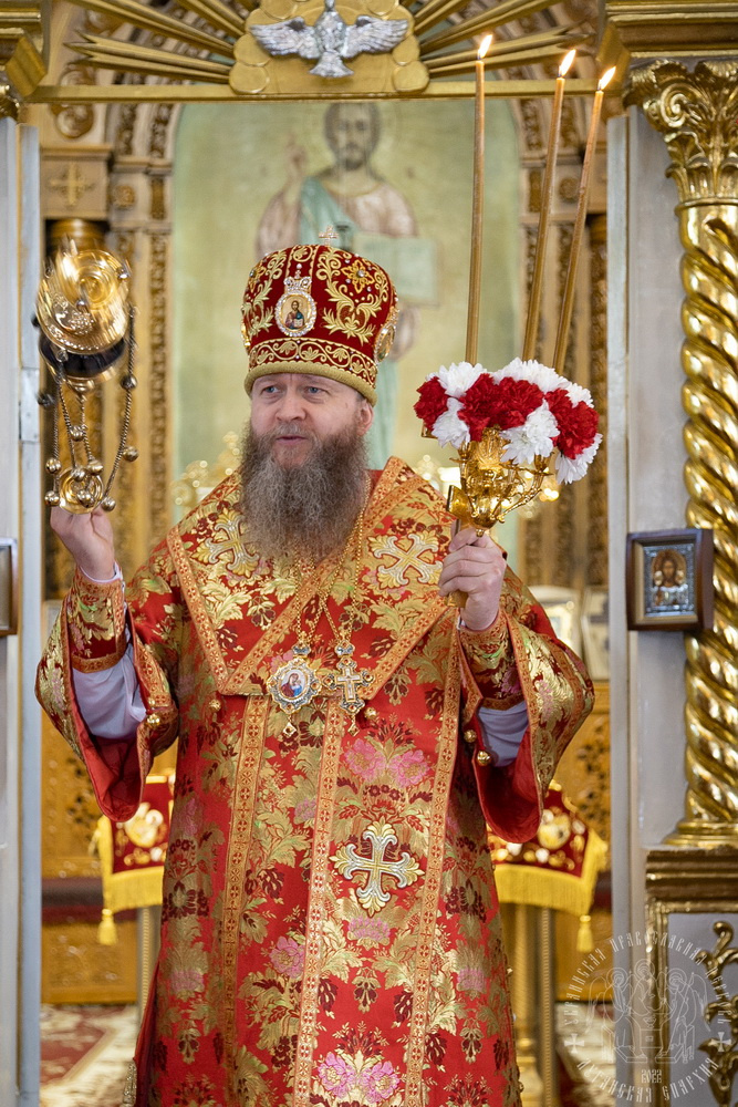 После сугубой ектении владыка вознес молитву о Церкви, мире и умножении любви среди народа Отечества нашего и молитву «во время распространения вредоносного поветрия».