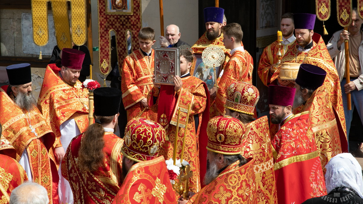 Сразу по окончании Литургии был совершен пасхальный крестный ход вокруг собора.