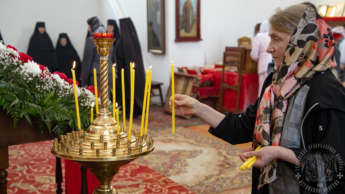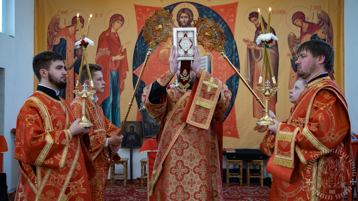По окончании молебна, владыка Пантелеимон произнес проповедь, поздравил паству с третьим днем праздника Пасхи и престольным днем, поскольку нижний храм освящен в честь воспоминаемого образа.