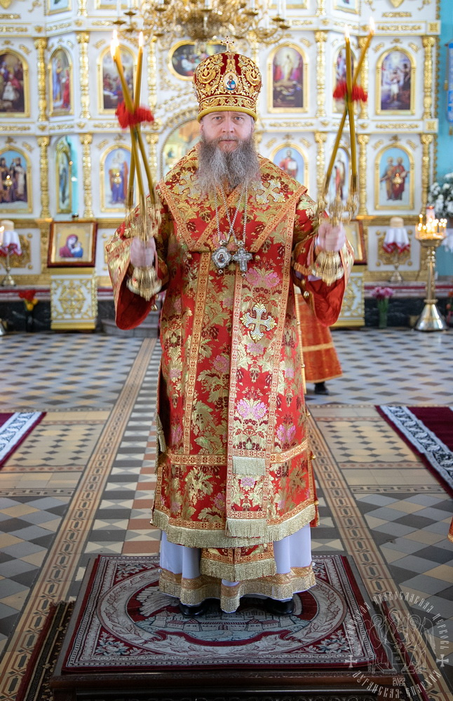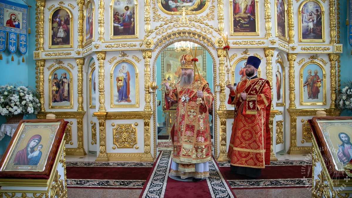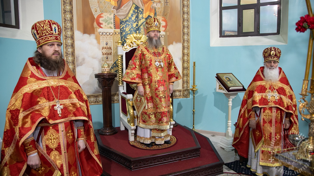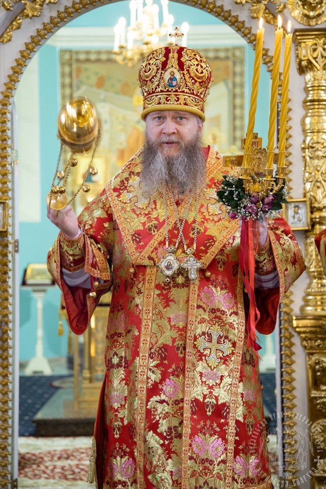 После сугубой ектении, владыка вознес молитву о Церкви, о мире и умножении любви среди народа Отечества нашего и молитву «во время распространения вредоносного поветрия».