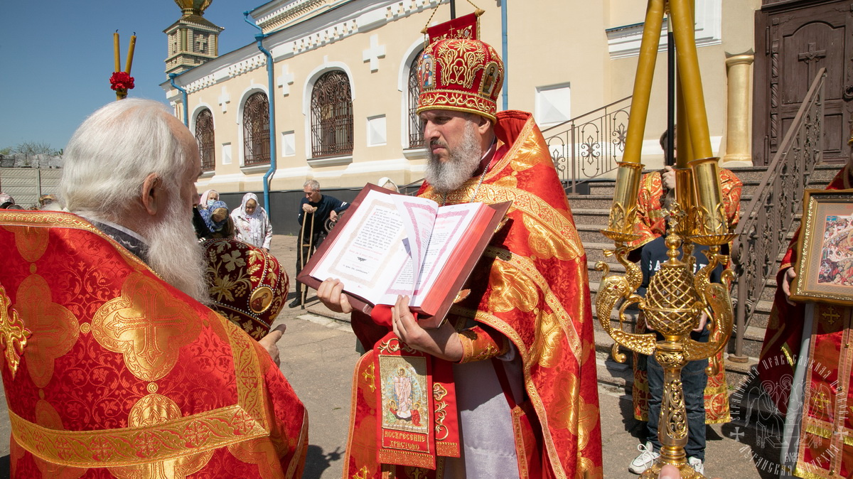 Затем владыка, духовенство и верующие совершили Пасхальный Крестный ход вокруг собора.
