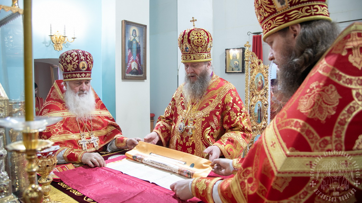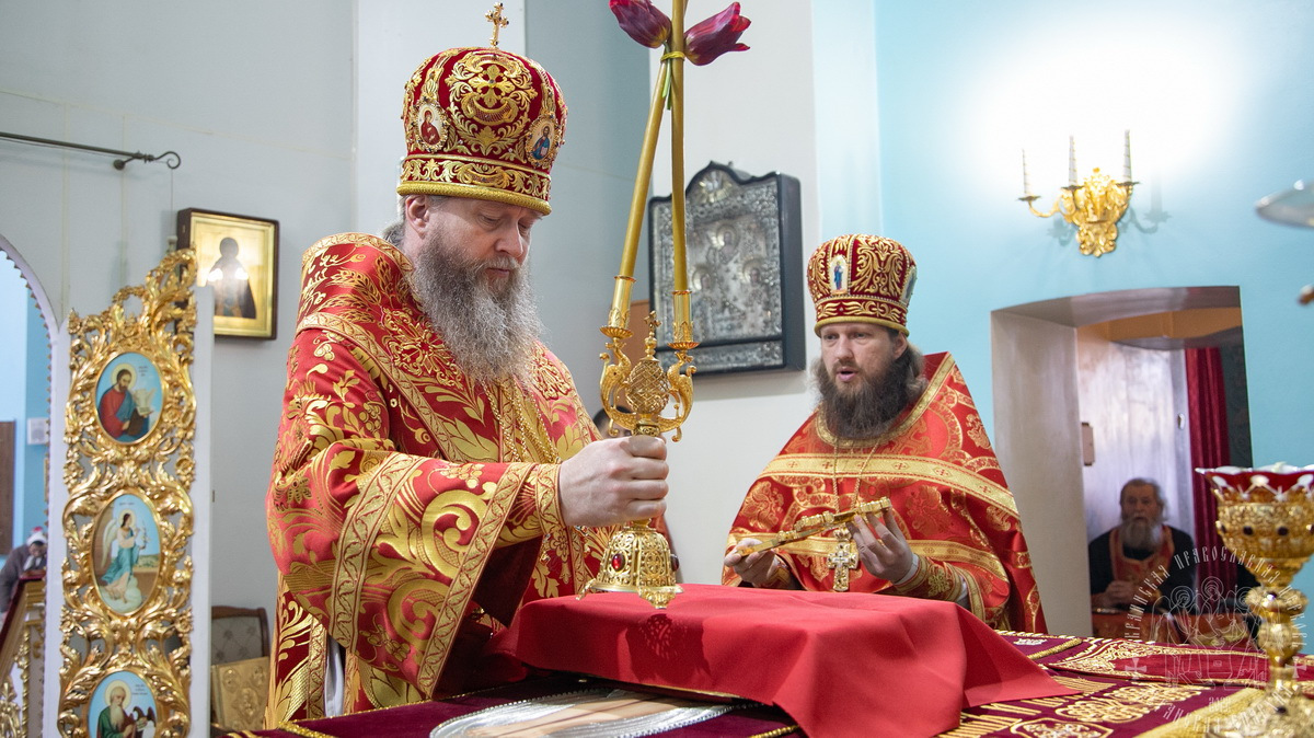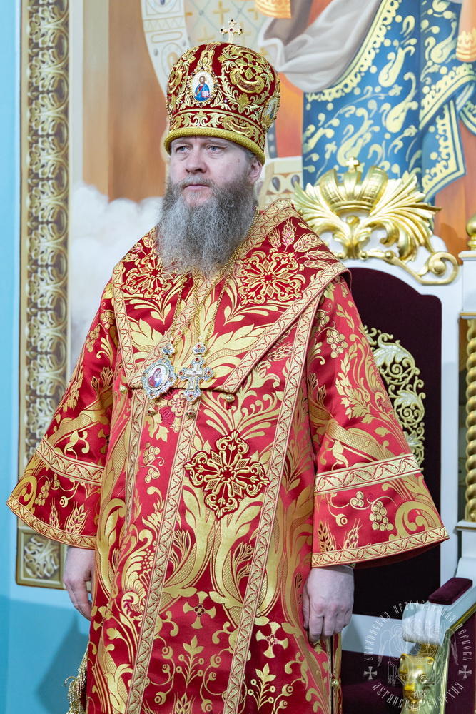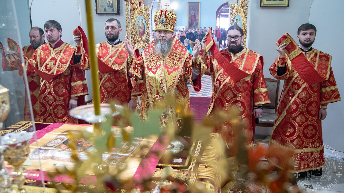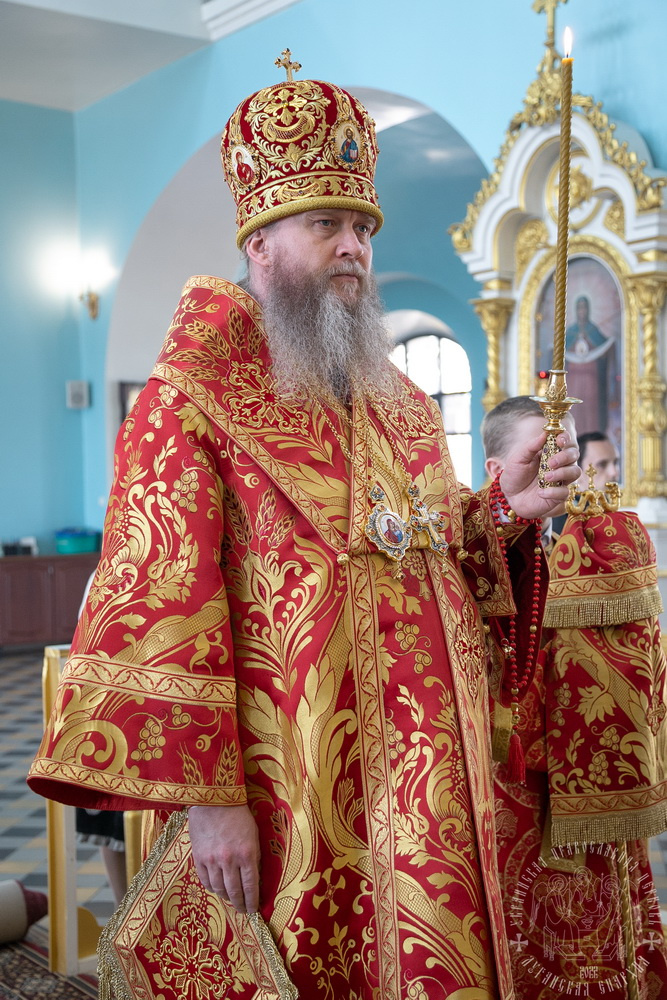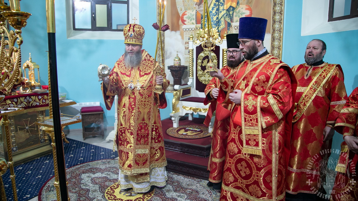 После сугубой ектении, владыка вознес молитву о Церкви, о мире и умножении любви среди народа Отечества нашего и молитву «во время распространения вредоносного поветрия».