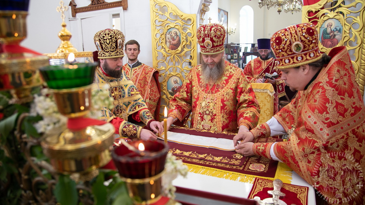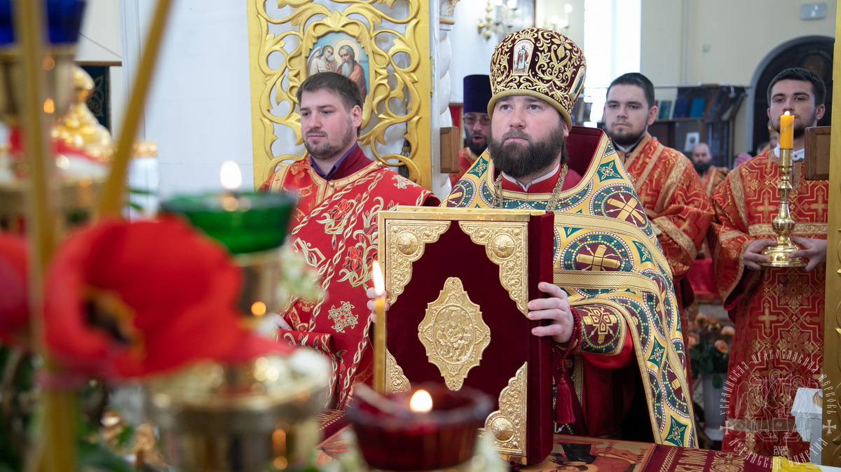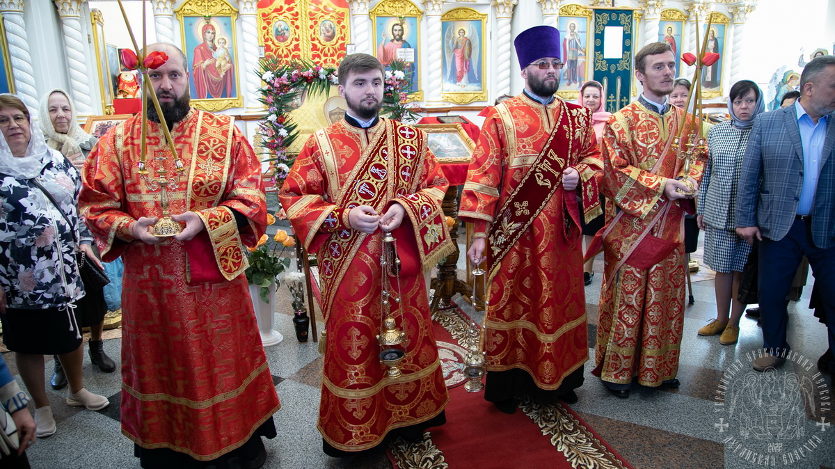 Поблагодарив священнослужителей и верующий народ за общую молитву, владыка Пантелеимон поздравил руководителя Протокольной службы протодиакона Тарасия Любавцева с днем его 33-летия, пожелав ему многих благословенных лет жизни на ниве служения Церкви Христовой.