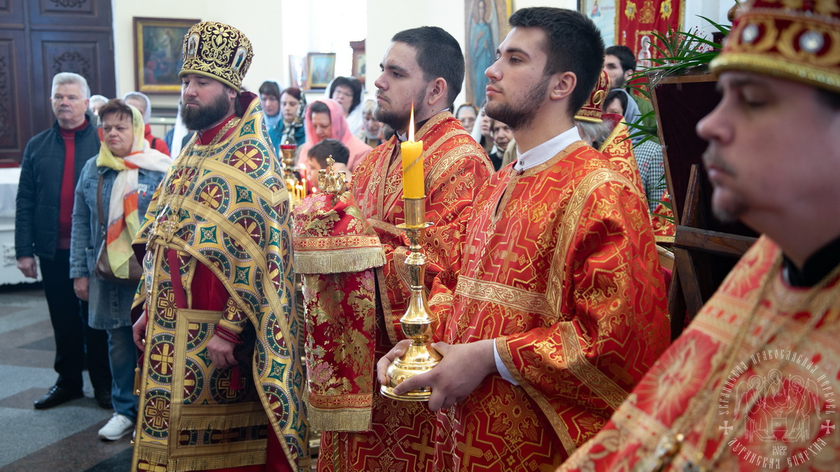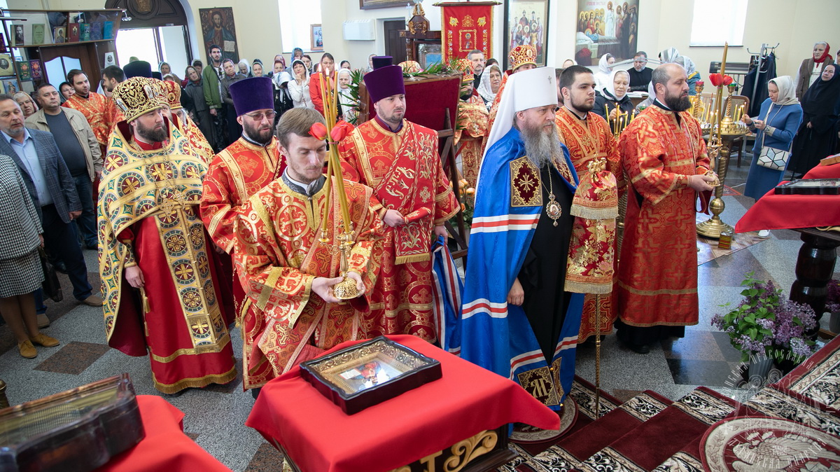 2 мая, в пятый день Пасхи Христовой, день памяти святой блаженной Матроны Московской, Высокопреосвященнейший Пантелеимон, митрополит Луганский и Алчевский, совершил Божественную литургию в Свято-Александро-Невском храме.