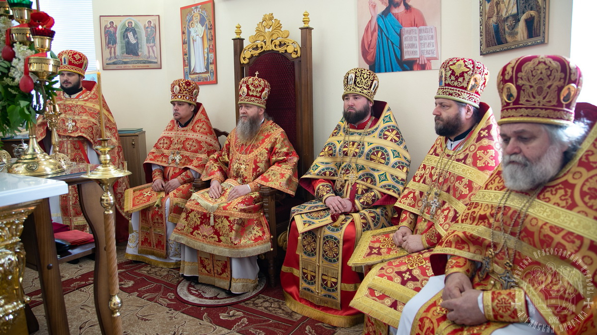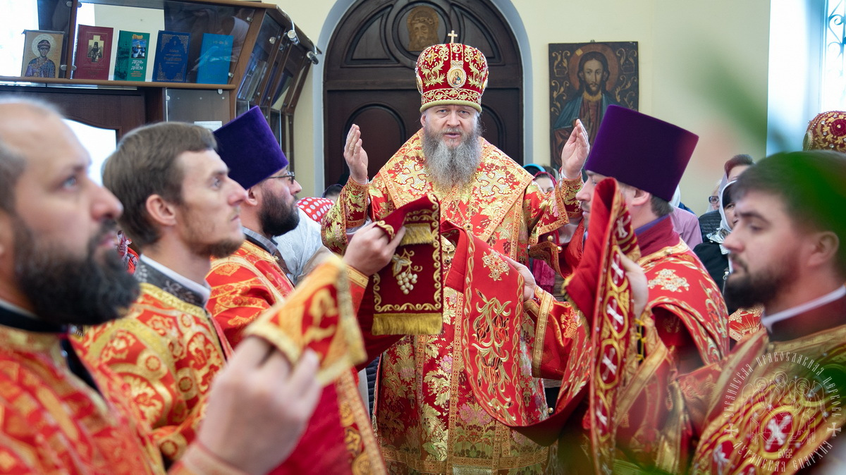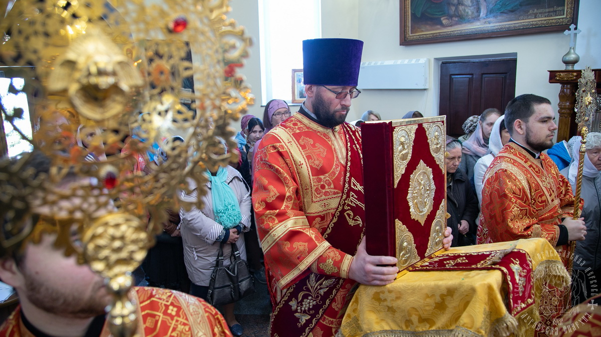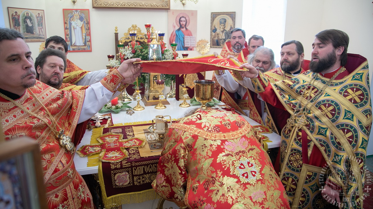 После сугубой ектении архипастырь вознес молитву о Церкви, о мире и умножении любви среди народа Отечества нашего и молитву «во время распространения вредоносного поветрия».