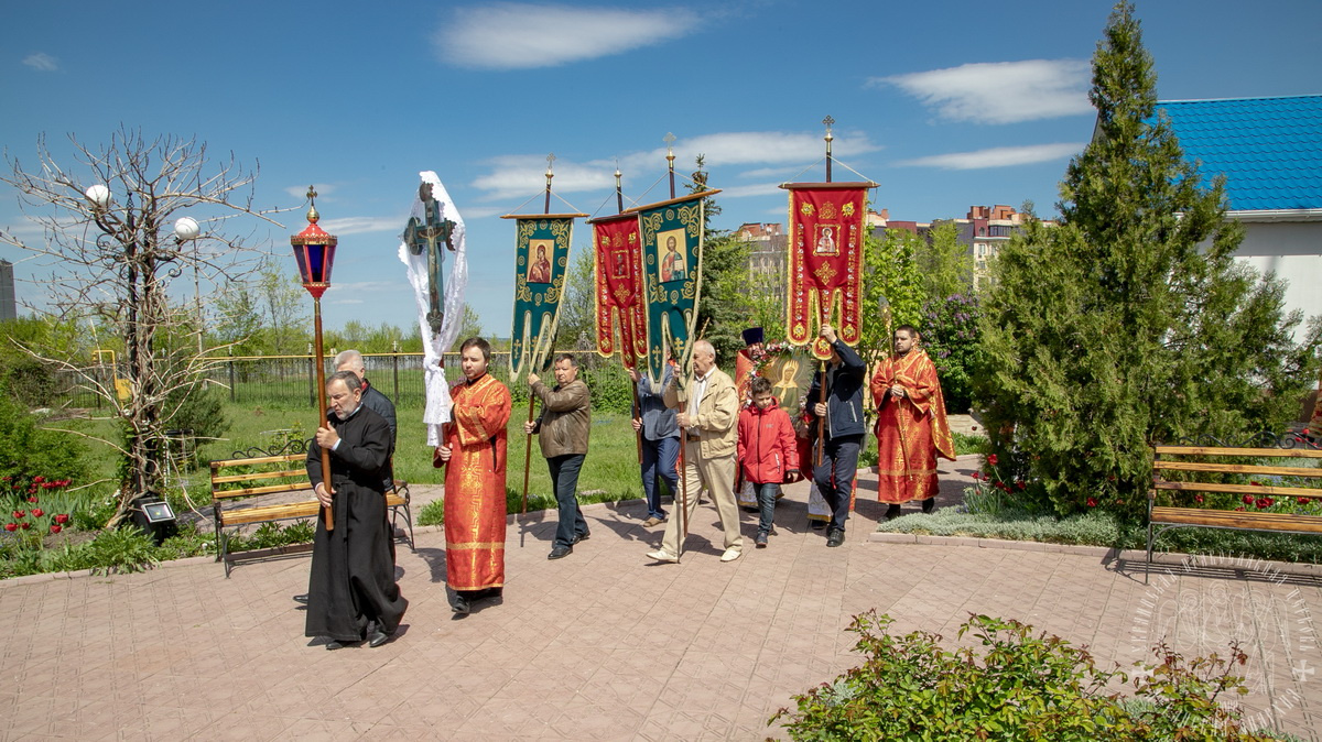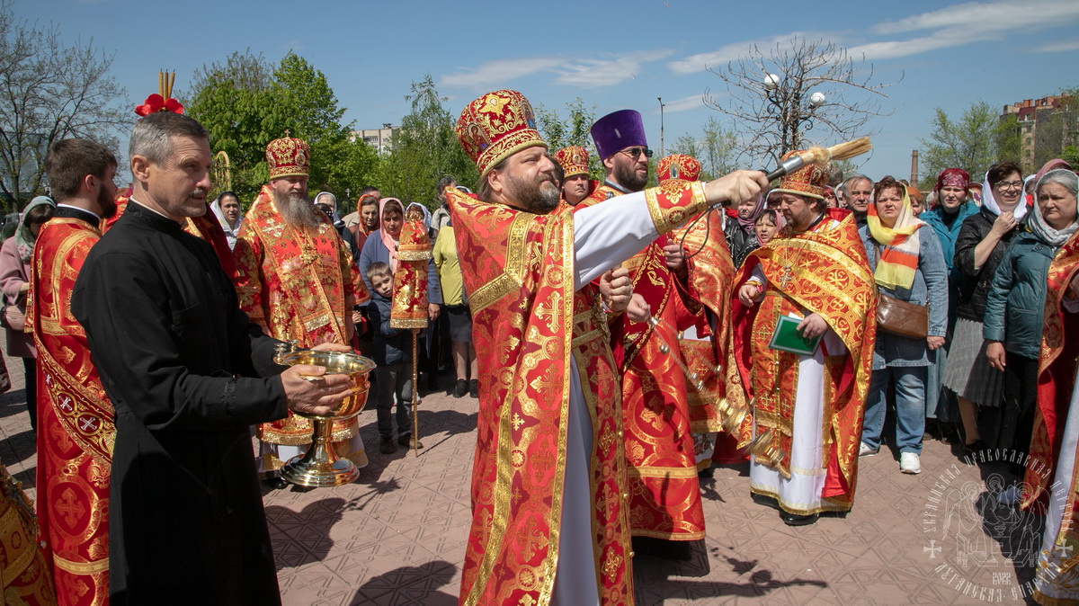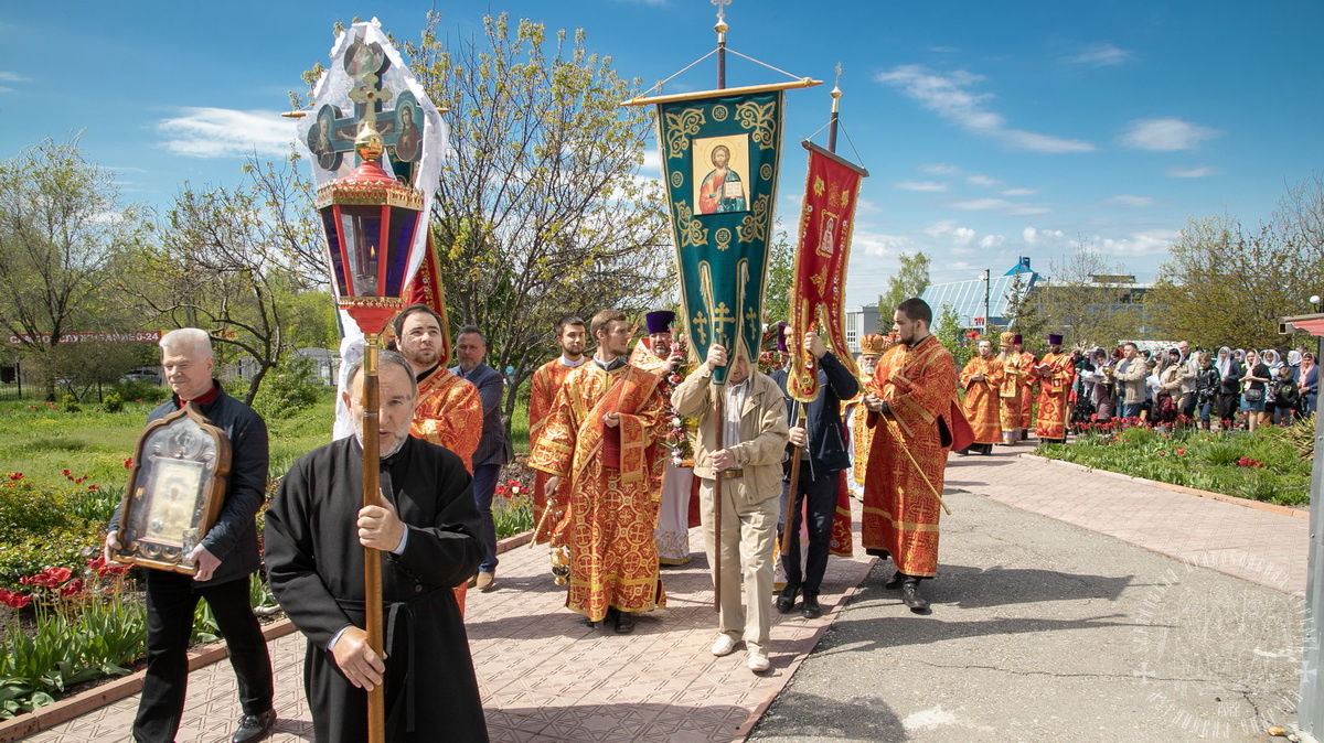 Сразу по окончании литургии был совершен крестный ход вокруг храма Пасхальным чином.