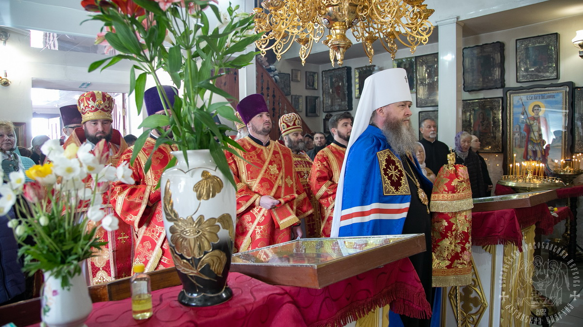 По окончании Литургии архипастырь вознес молитву великомученику Георгию Победоносцу, после чего было совершено славление святому.