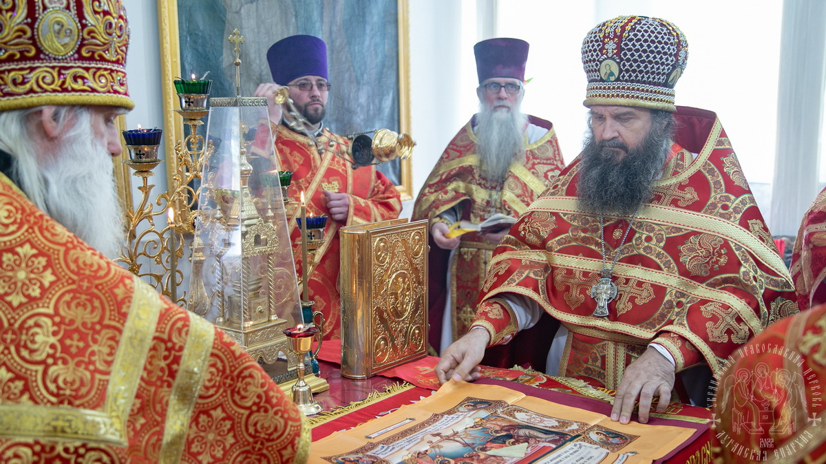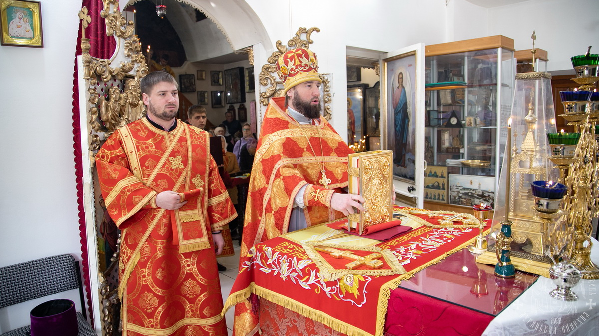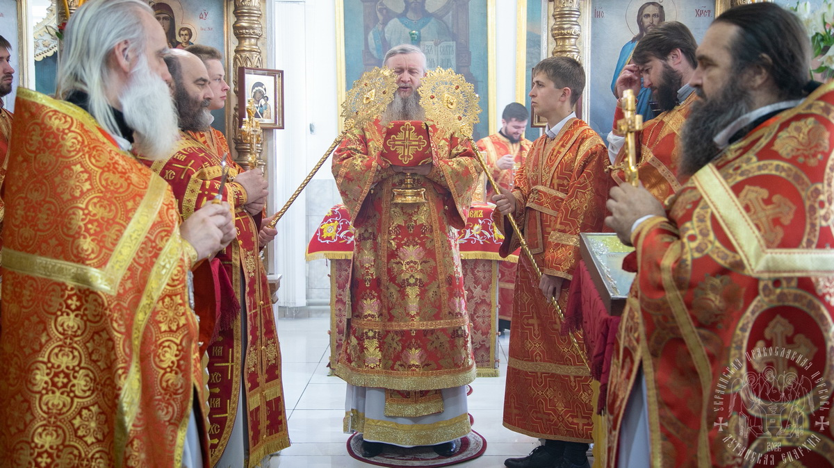 После сугубой ектении архипастырь вознес молитву о Церкви, о мире и умножении любви среди народа Отечества нашего и молитву «во время распространения вредоносного поветрия».