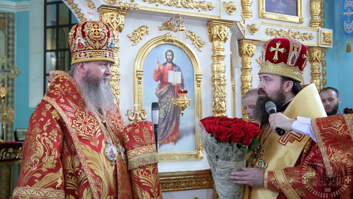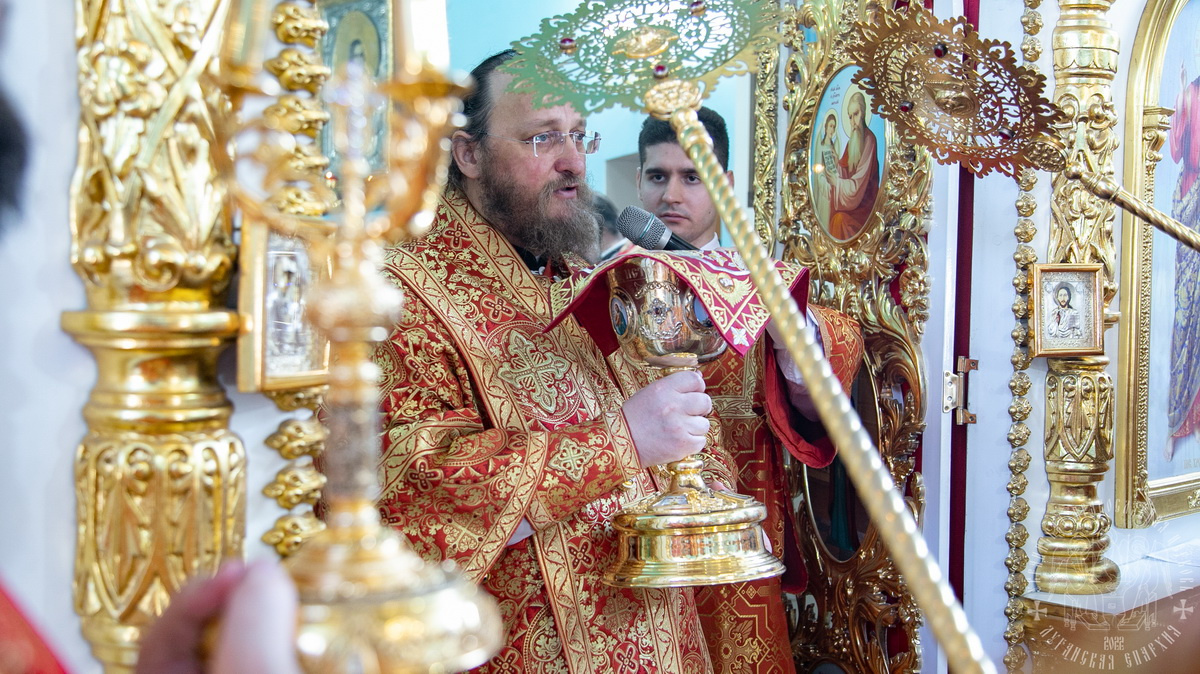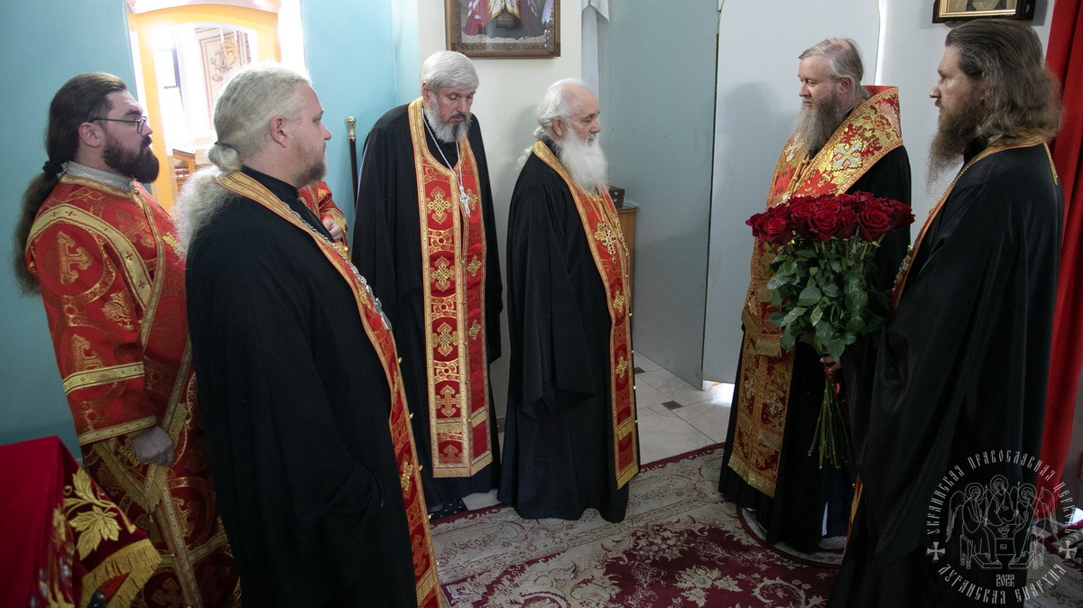 Его Высокопреосвященству сослужили: Высокопреосвященнейший Никодим, митрополит Северодонецкий и Старобельский; Преосвященнейший Павел, епископ Беловодский, викарий Луганской епархии; Преосвященнейший Иринарх, епископ Новопсковский, викарий Северодонецкой епархии, духовенство Луганской, Северодонецкой и Ровеньковской епархий.