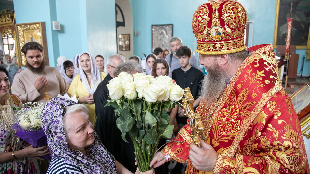 После всего, владыка преподал благословение пастве и принял подарки и поздравления от прихожан.