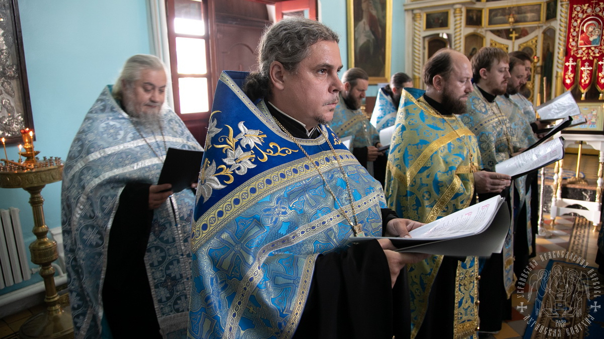 Его Высокопреосвященству сослужили: Преосвященнейший Павел, епископ Беловодский, викарий Луганской епархии, секретарь епархии протоиерей Андрей Зозуля, благочинный центрального округа города Луганска протоиерей Александр Пономарев с духовенством благочиния, духовенство Ровеньковского благочиния Ровеньковской епархии, а также соборное духовенство.