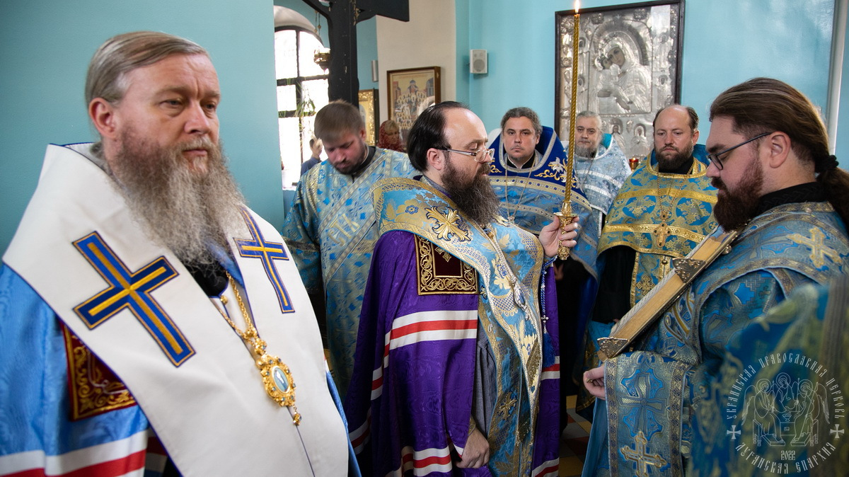 После молебного пения владыка обратился к прихожанам с проповедью, в которой рассказал о наших молитвах ко Пресвятой Богородице, о Ее помощи человеческому роду, после чего поблагодарил всех за совместную молитву и призвал на всех Божие благословение.