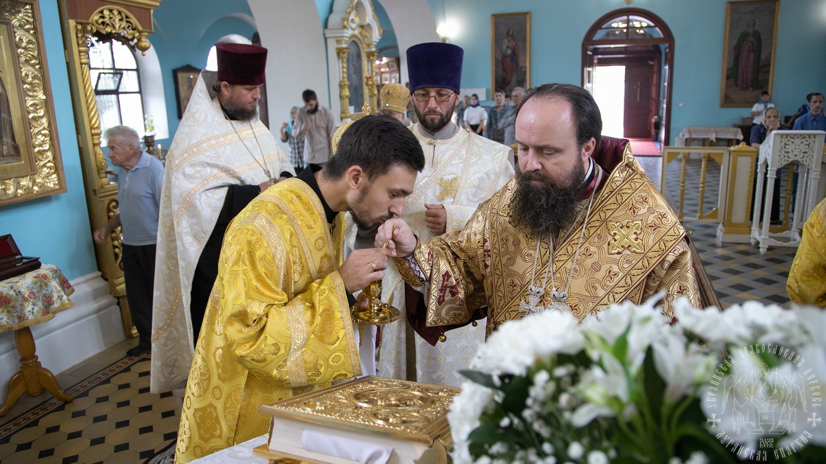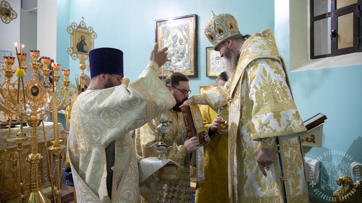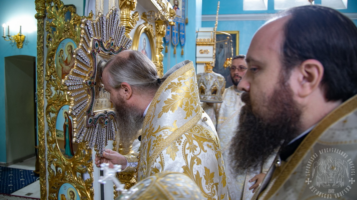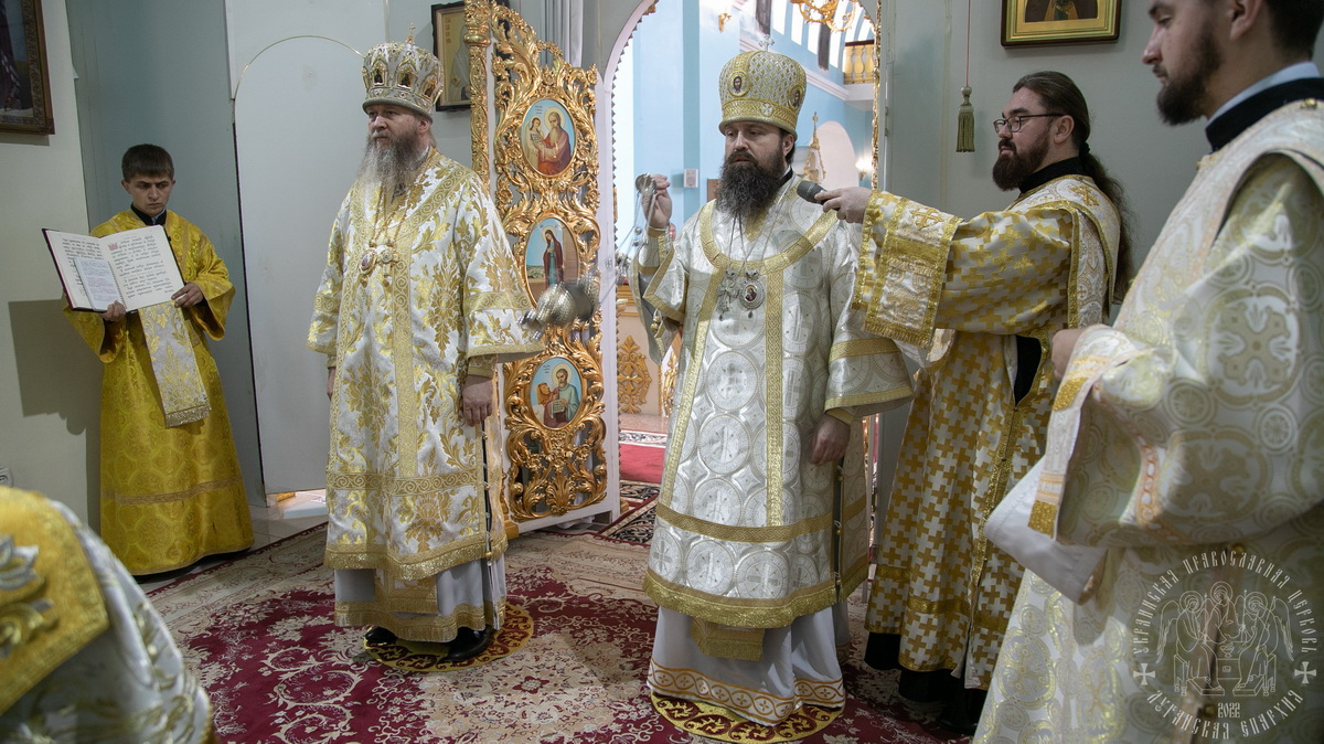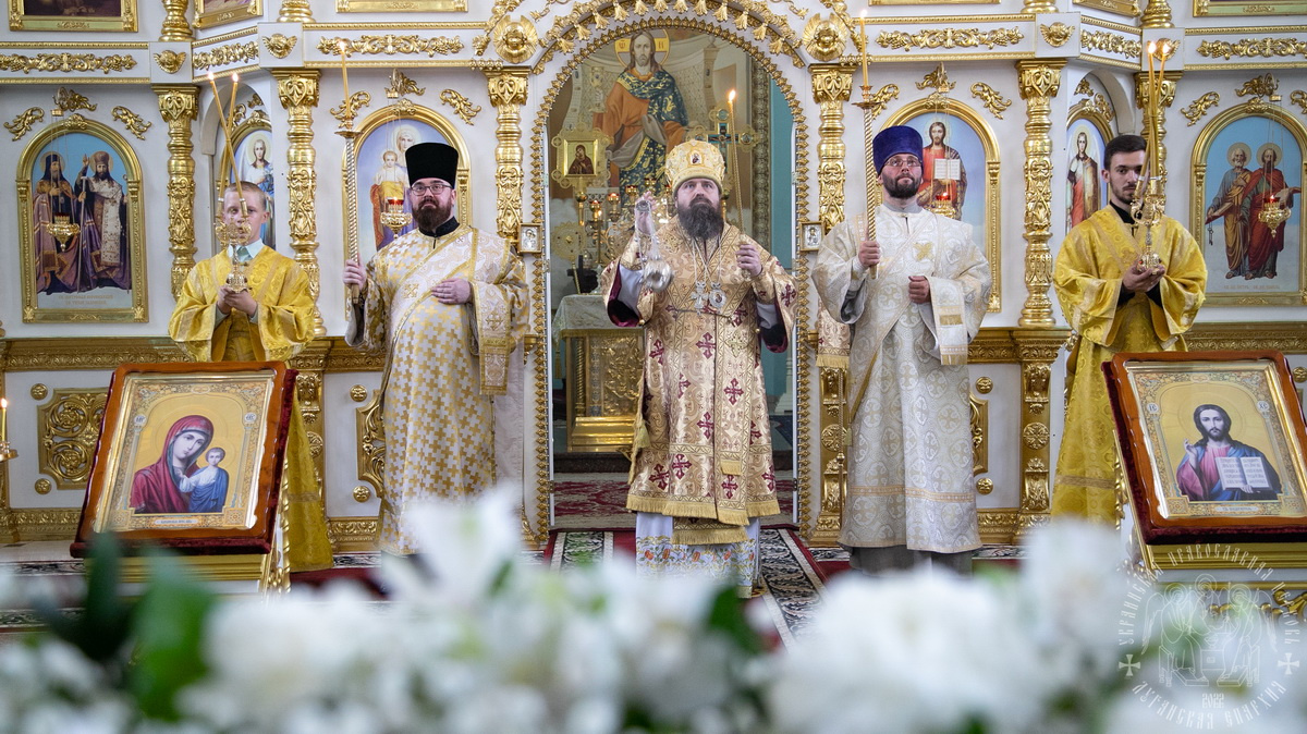 За Литургией Преосвященным архипастырям сослужил секретарь епархии прот. Андрей Зозуля, а также духовенство кафедрального собора.