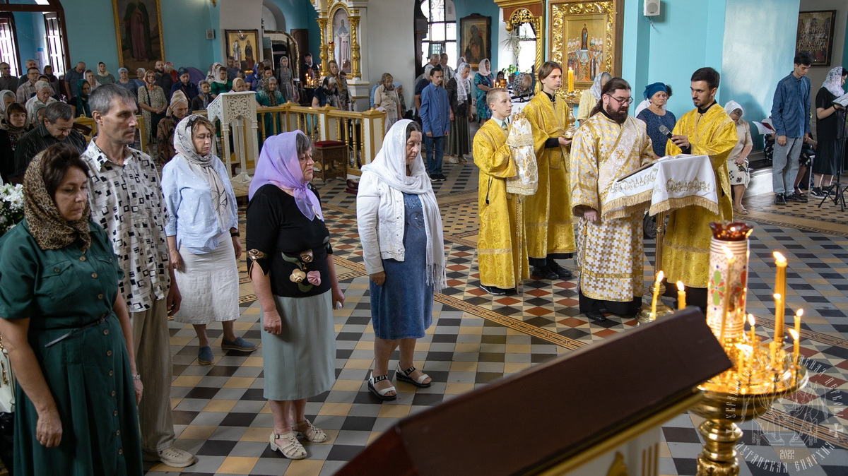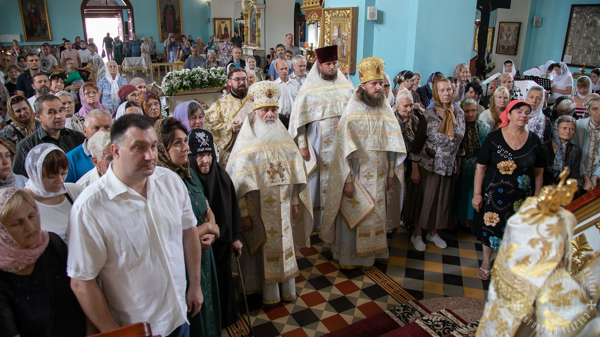 По окончании Литургии митрополит Пантелеимон выразил слова благодарности викарию Луганской епархии, сослужившему духовенству за соборную молитву, поздравил паству с воскресным днем, попразднством Преображения Господня и преподал всем благословение.