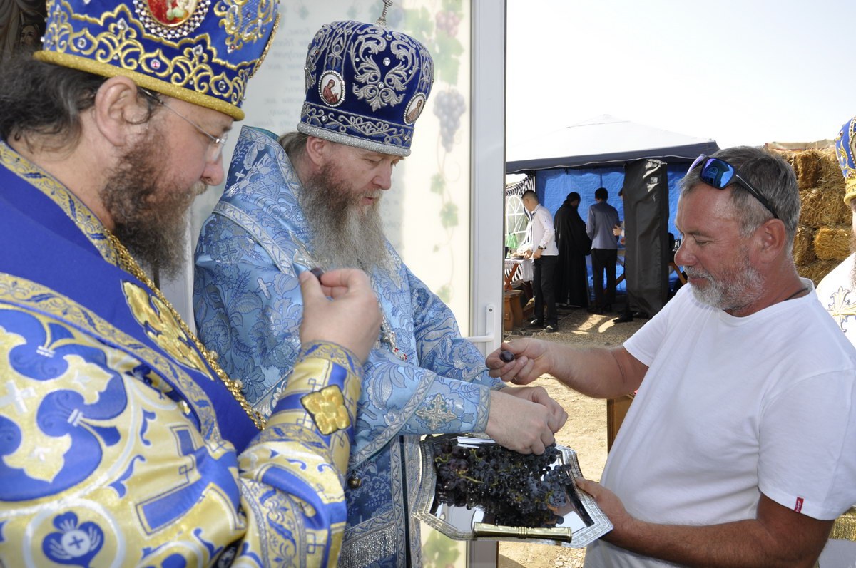 30 августа, Высокопреосвященнейший Пантелеимон митрополит Луганский и Алчевский, в сослужении Высокопреосвященнейшего Никодима митрополита Северодонецкого и Старобельского, викария Луганской епархии Высокопреосвященнейшего Павла архиепископа Беловодского, и викария Северодонецкой епархии Преосвященнейшего Иринарха епископа Новопсковского, совершил Божественную литургию в храме святого мученика Трифона на виноградных плантациях усадьбы Савиных пгт. Бугаёвка.