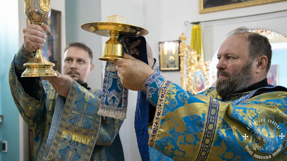 За Литургией Его Преосвященству сослужили клирики кафедрального собора, а также приглашенное духовенство.