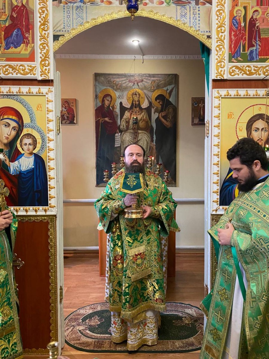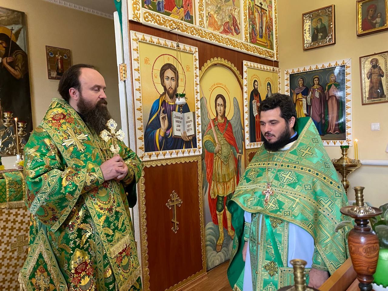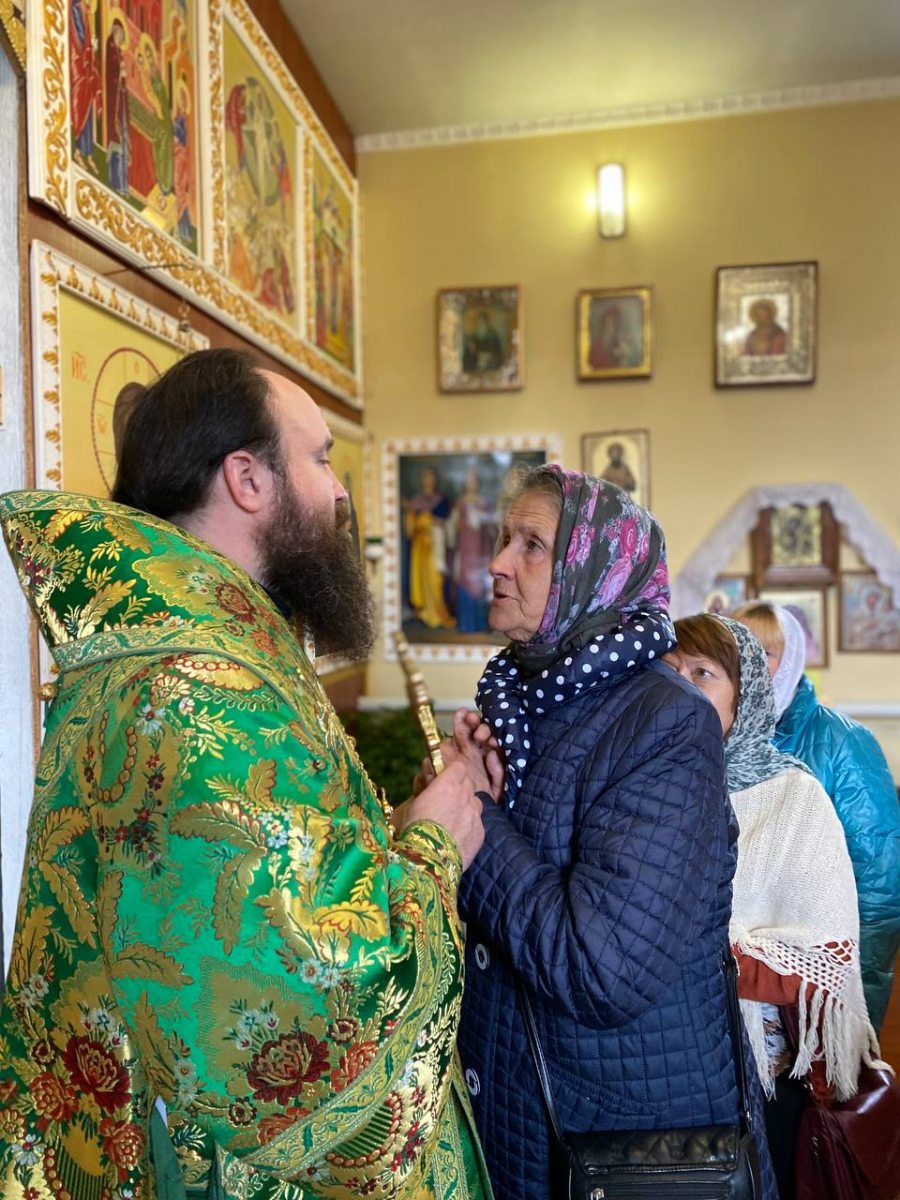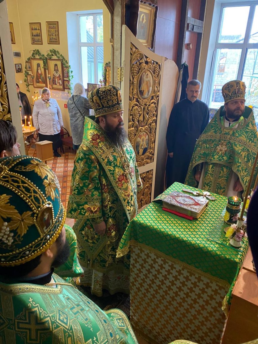 По окончании Литургии было совершено славление святым покровителям прихода, владыка поздравил настоятели и прихожан с престольным праздником и передал слова поздравления от правящего архиерея.