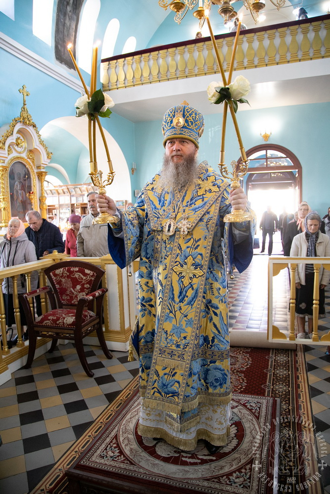 По прочтении Евангелия, архипастырь произнес проповедь, в которой рассказал верующим о святых праведных Иоакиме и Анне и о рождении ими Пресвятой Богородицы.