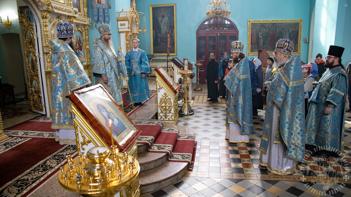 По окончании Литургии было совершено славление праздника Рождества Пресвятой Богородицы, иконе Божией Матери Святогорской и святым преподобным отцам Святогорским.
