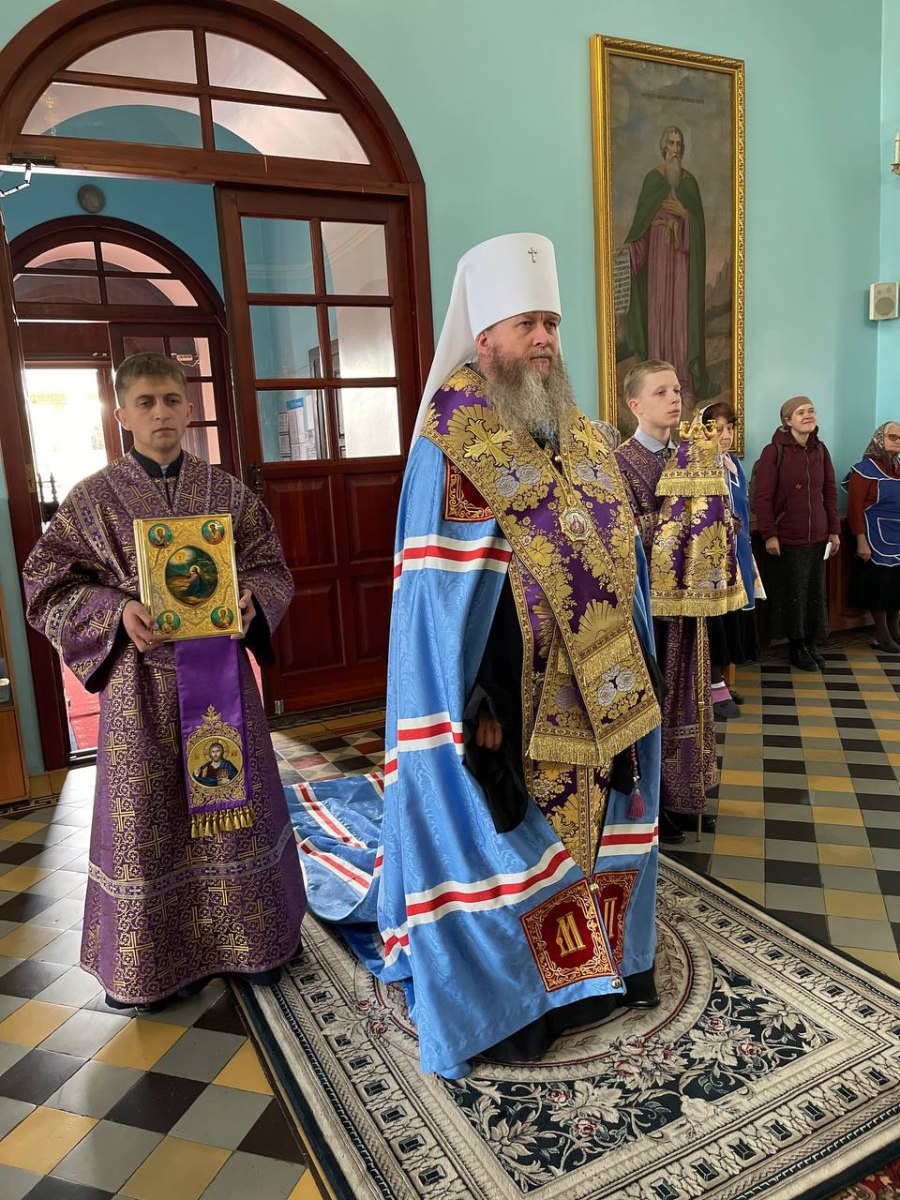 За Литургией Его Высокопреосвященству сослужил секретарь епархии прот. Андрей Зозуля, а также соборное духовенство.