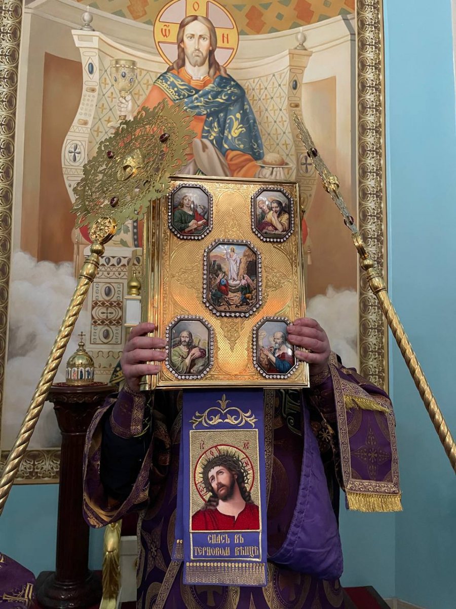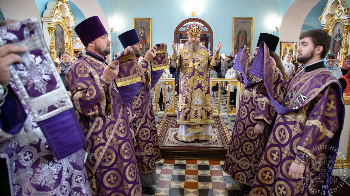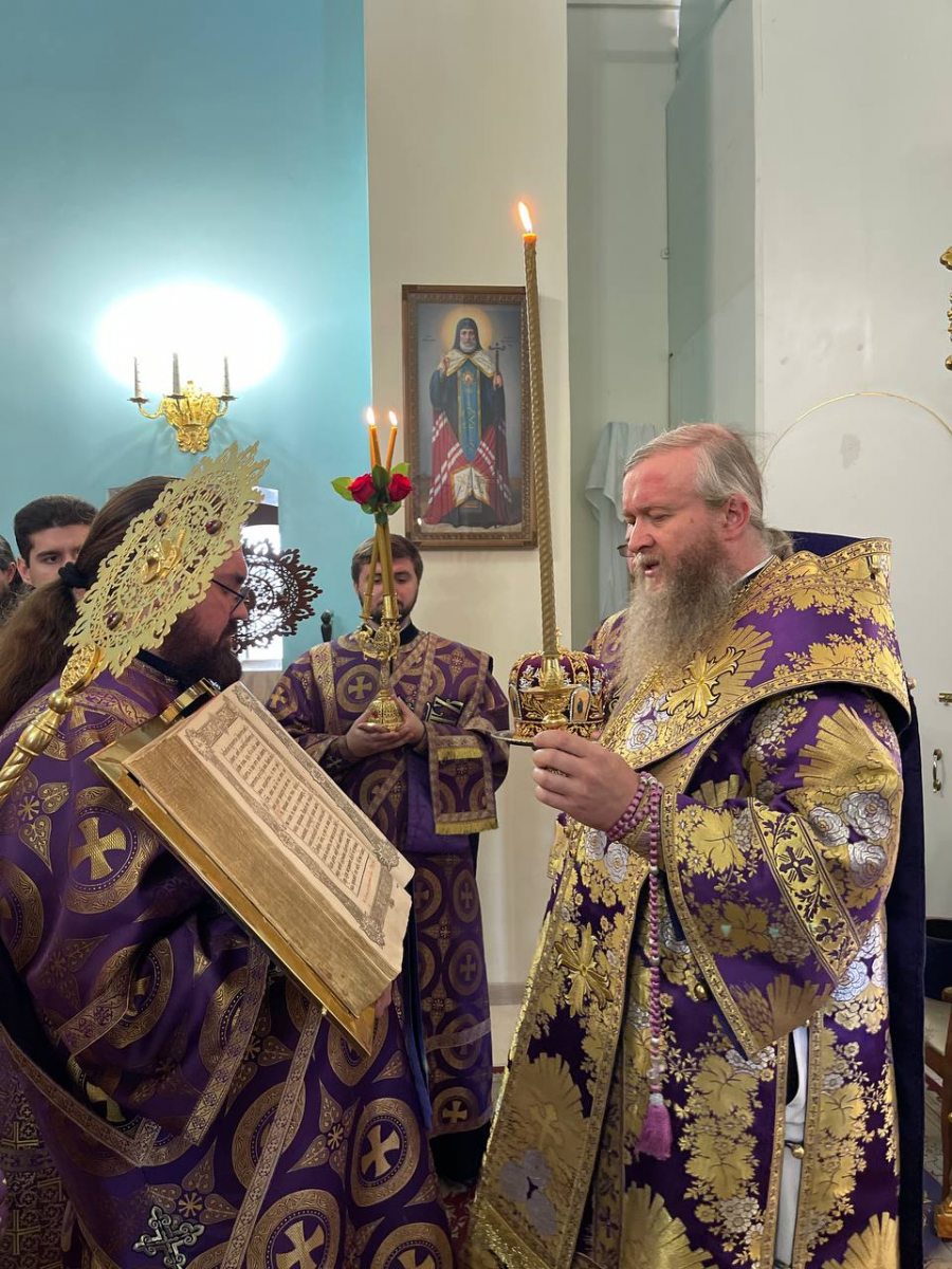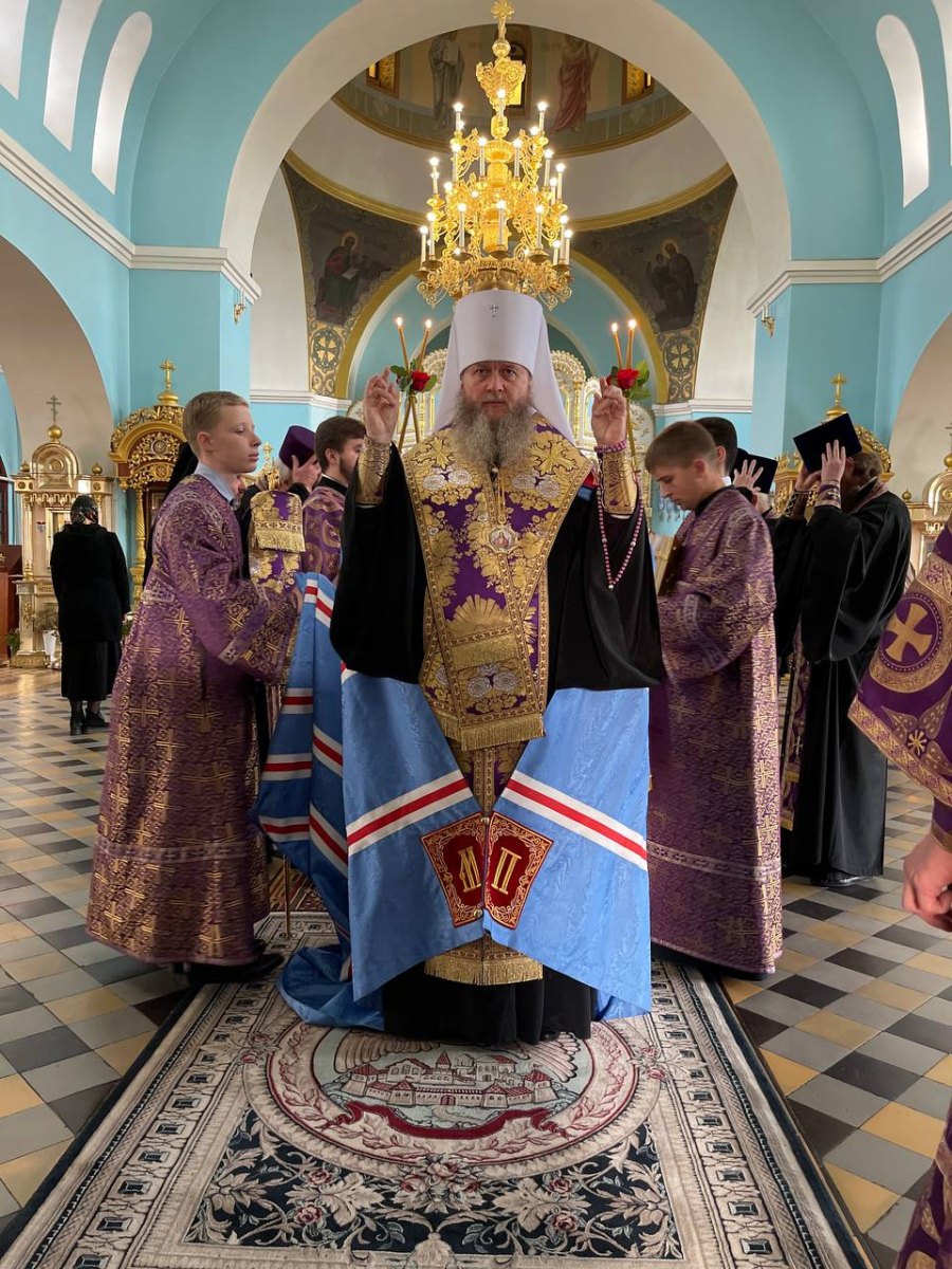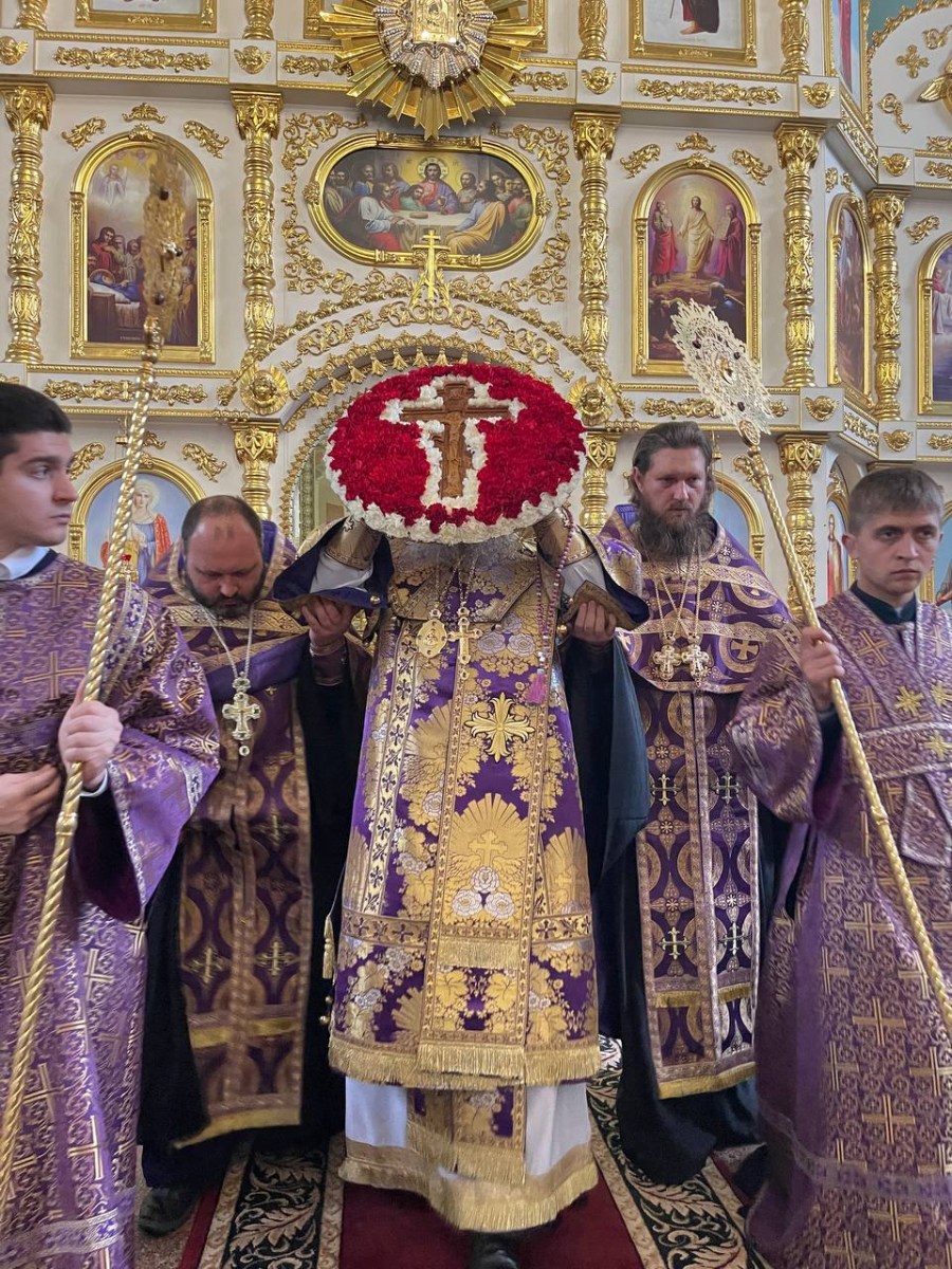 Накануне праздника дня архипастырь совершил в соборе Всенощное бдение с чином Воздвижения Креста Господня.