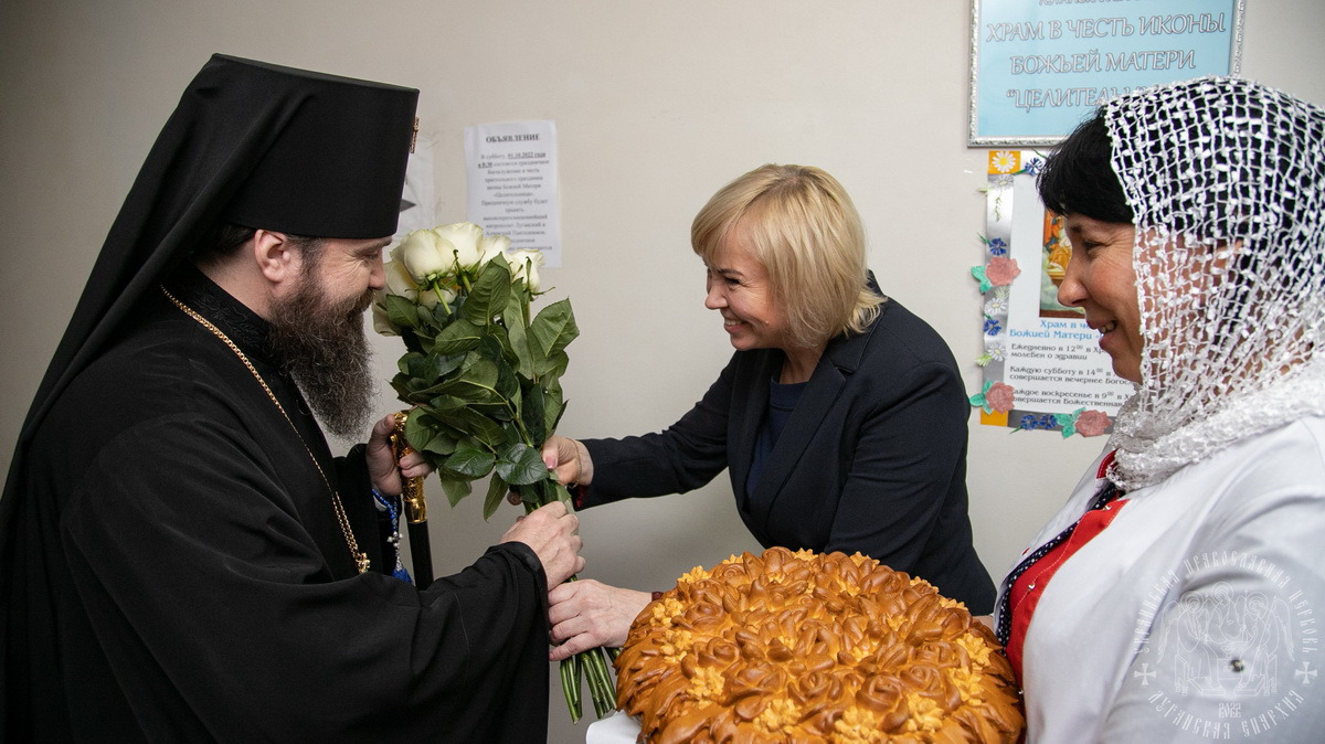 Затем архиепископ Павел обратился с приветственным словом к участникам соборной молитвы, поздравил настоятеля и прихожан больничного храма с престольным днем.