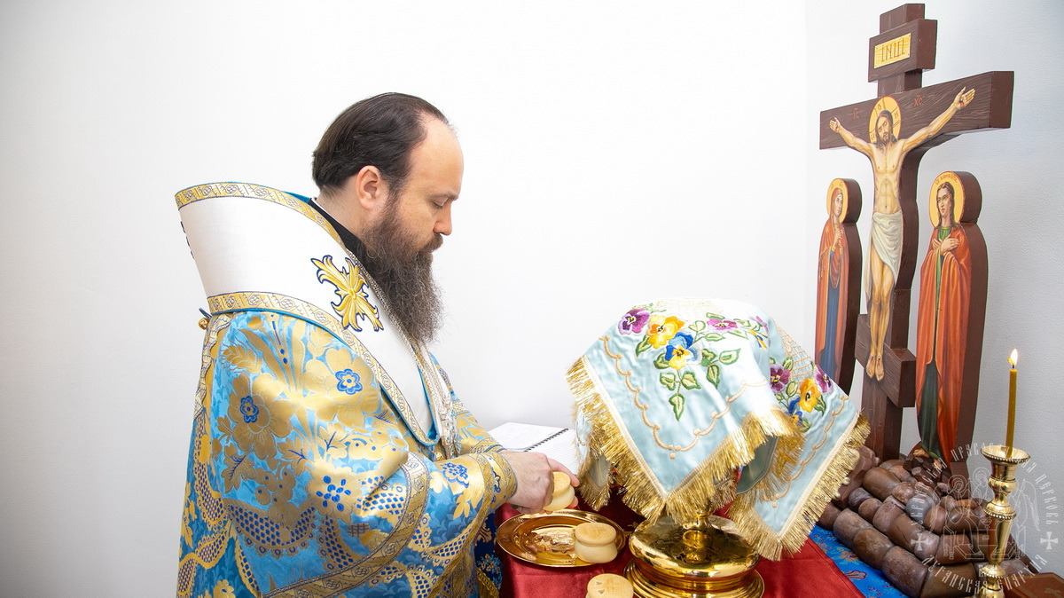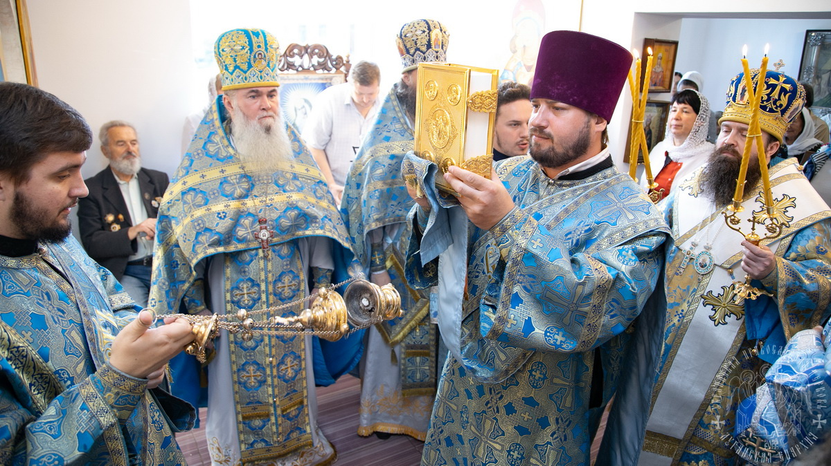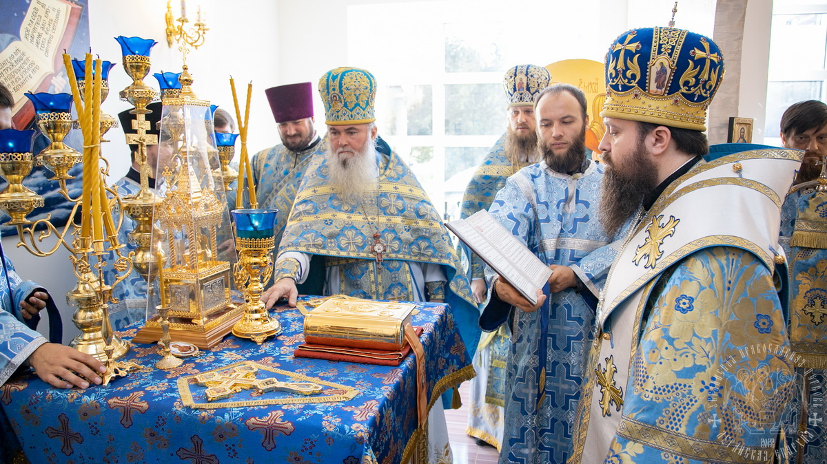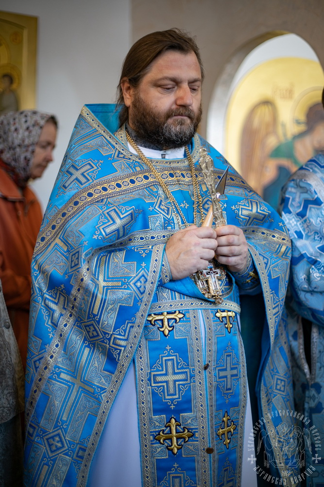 По окончании Литургии священнослужители совершили славление праздника Воздвижения Креста Господня и вознесли молитву Пресвятой Богородице.