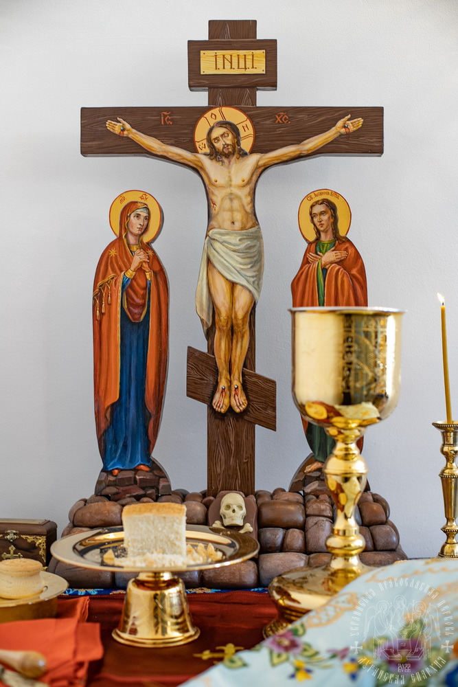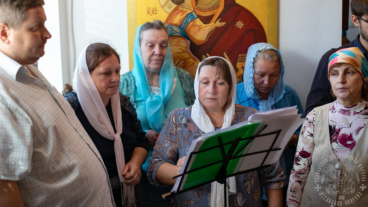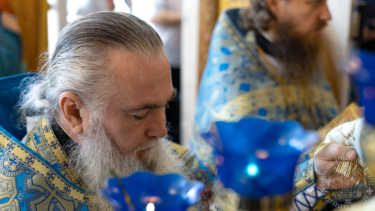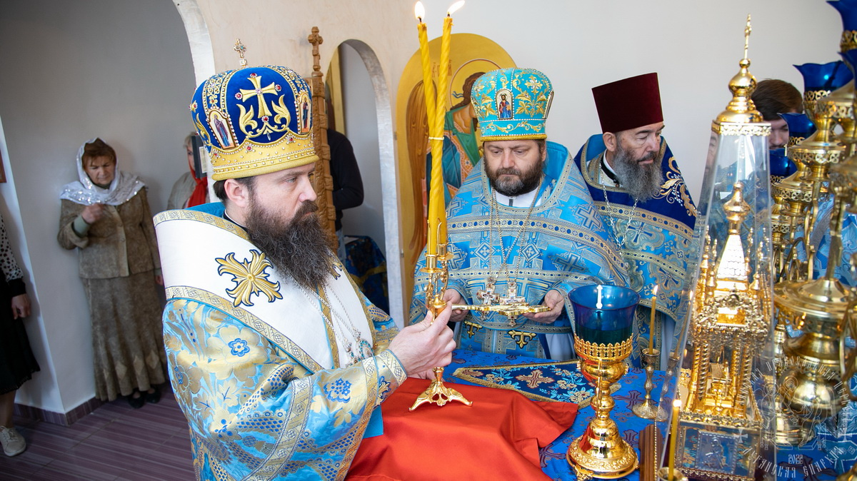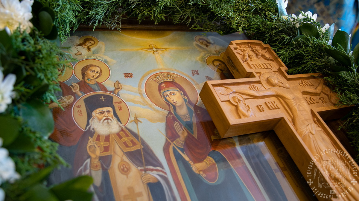 По окончании Литургии священнослужители совершили славление праздника Воздвижения Креста Господня и вознесли молитву Пресвятой Богородице.