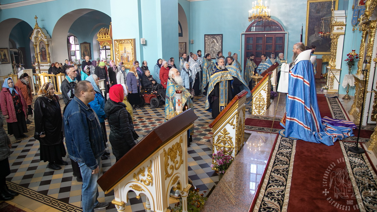 12 октября, Высокопреосвященнейший Пантелеимон, митрополит Луганский и Алчевский, в сослужении Высокопреосвященнейшего Павла, архиепископа Беловодского, совершил молебное акафистное пение у Луганской иконы Божией Матери в Свято-Петро-Павловском кафедральном соборе.
