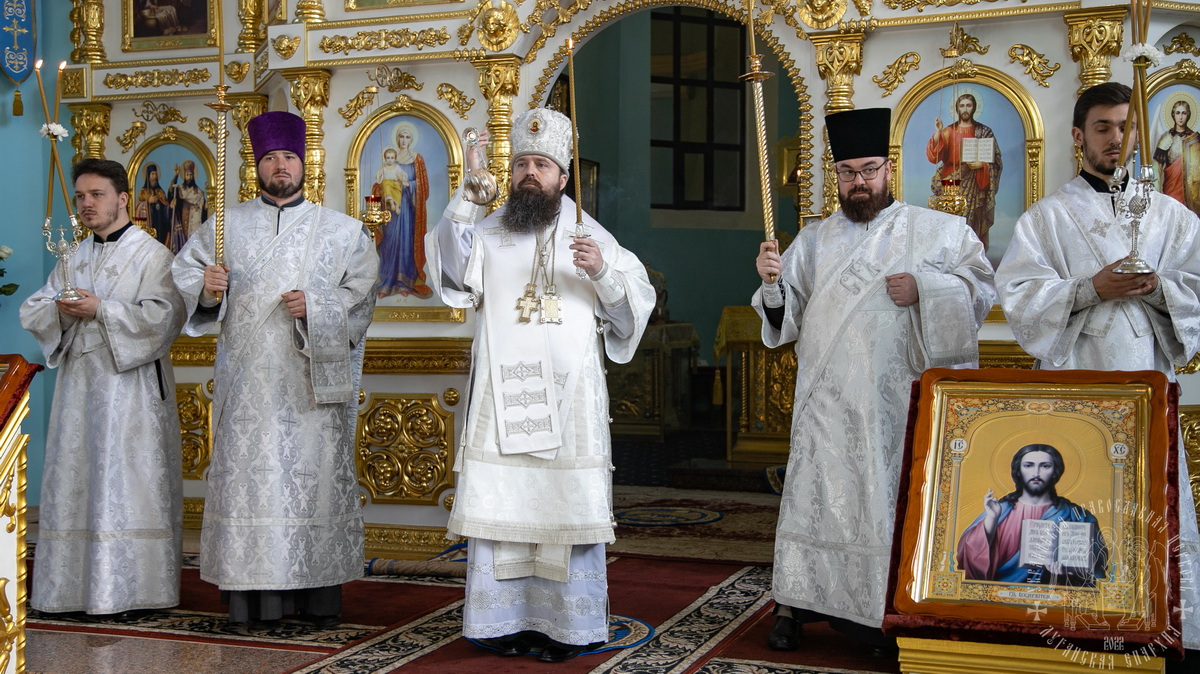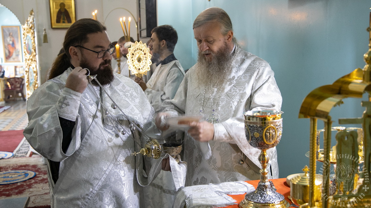 За Литургией Преосвященным архипастырям сослужил секретарь епархии прот. Андрей Зозуля, а также духовенство кафедрального собора.