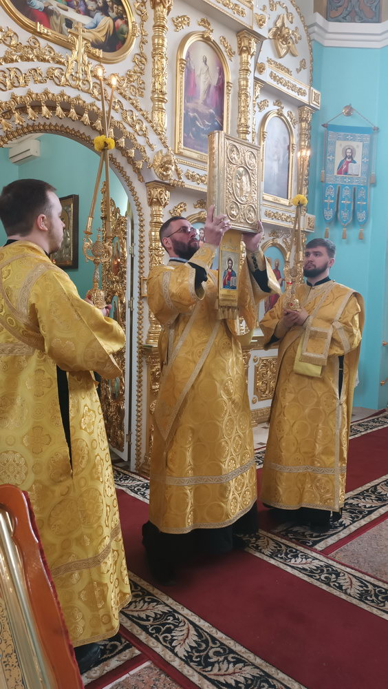 За Литургией Его Высокопреосвященству сослужил секретарь епархии прот. Андрей Зозуля, а также соборное духовенство.