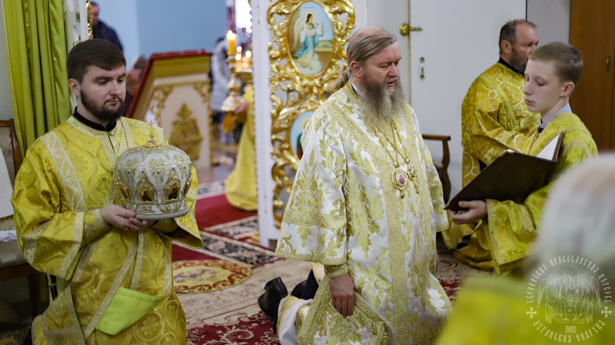 Накануне воскресного дня архипастырь совершил в соборе Всенощное бдение.