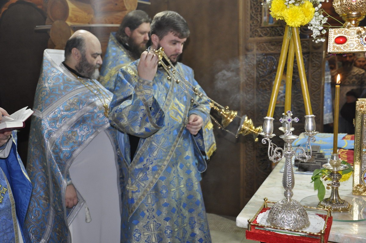 За Литургией Его Высокопреосвященству сослужил секретарь епархии прот. Андрей Зозуля, благочинный второго Луганского округа и настоятель храма архим. Тихон (Ильгов), благочинный Лутугинского округа Ровеньковской епархии прот. Александр Кузнецов, а также приглашенное духовенство.