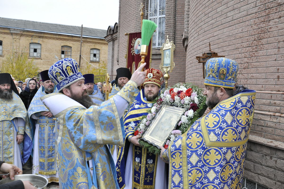 По окончании Литургии все участники торжества прошли крестным ходом вокруг главного храма с монастырскими святынями.