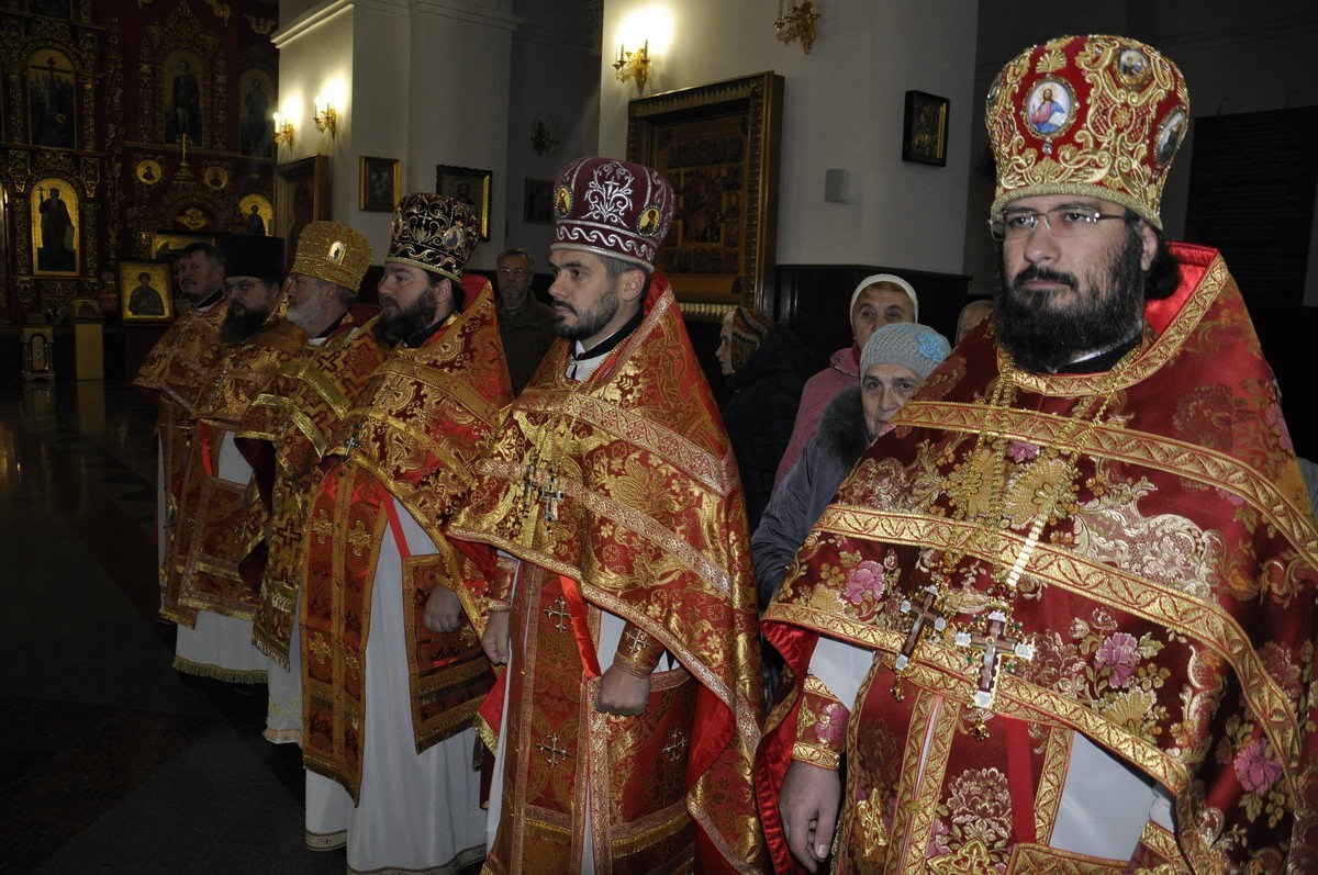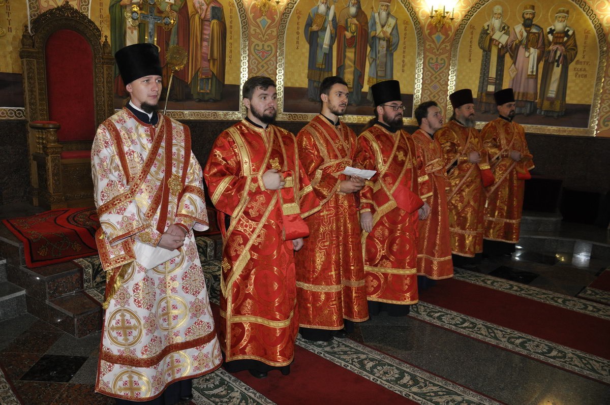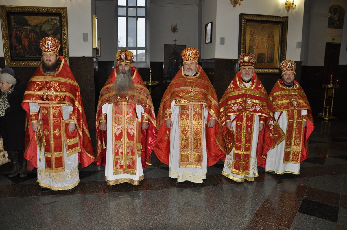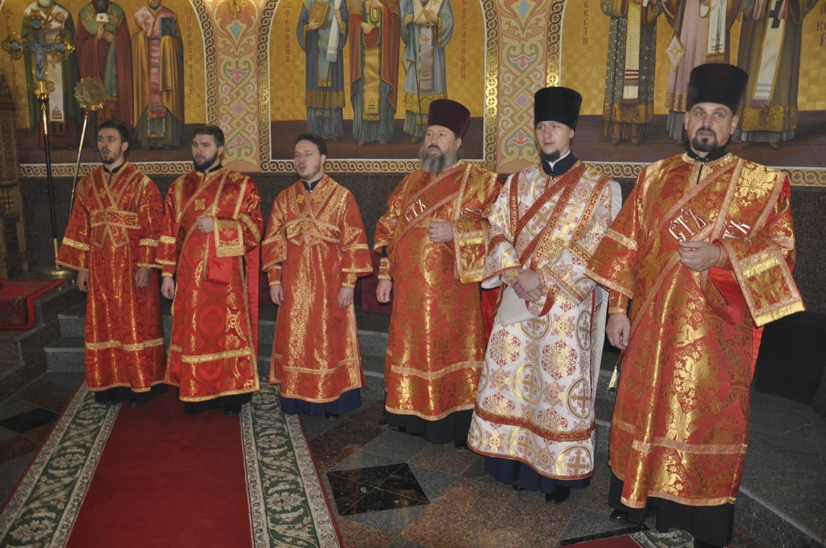 За Литургией Преосвященным архипастырям сослужил секретарь епархии прот. Андрей Зозуля, настоятель собора прот. Владимир Конончук, а также приглашенное духовенство.