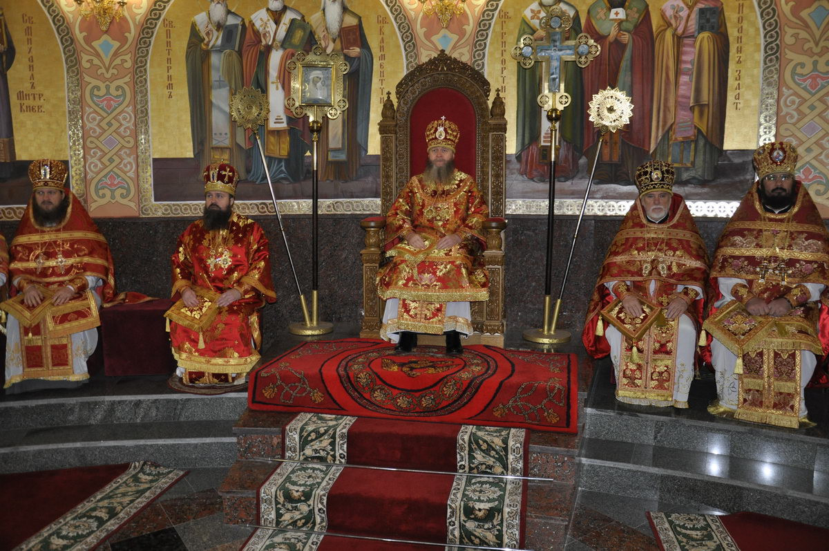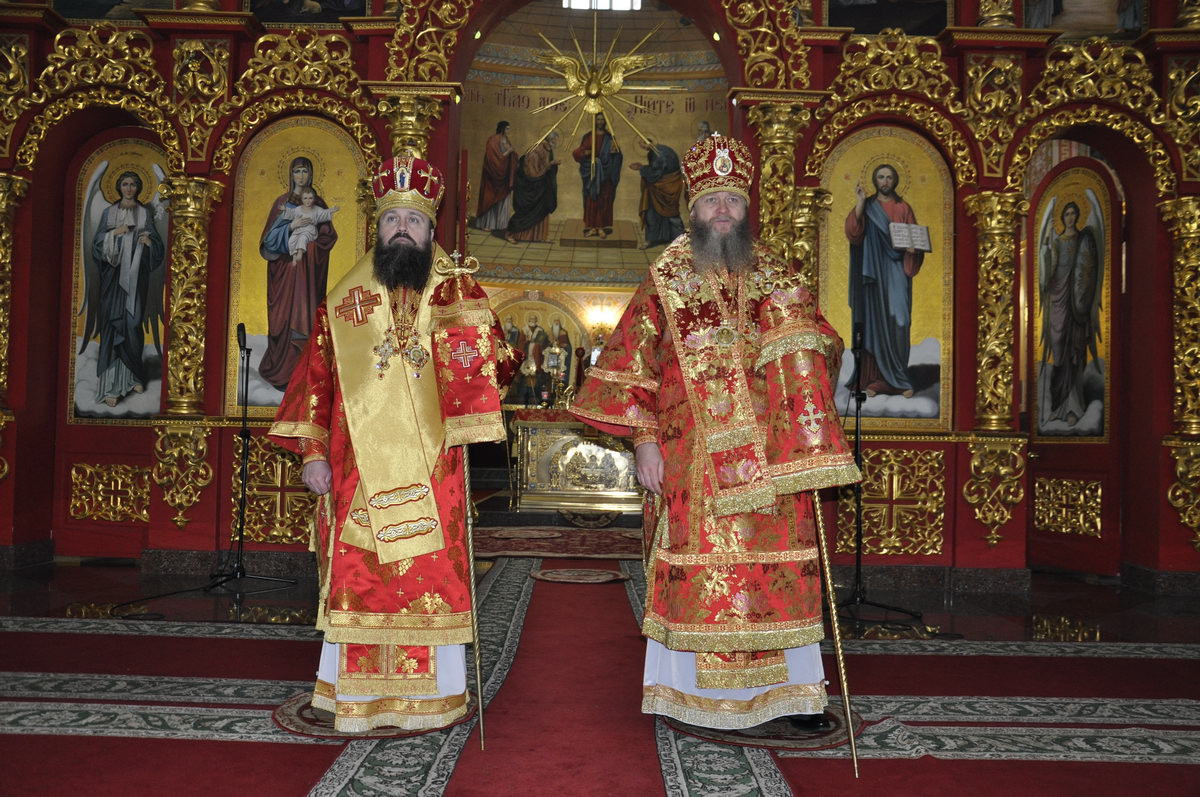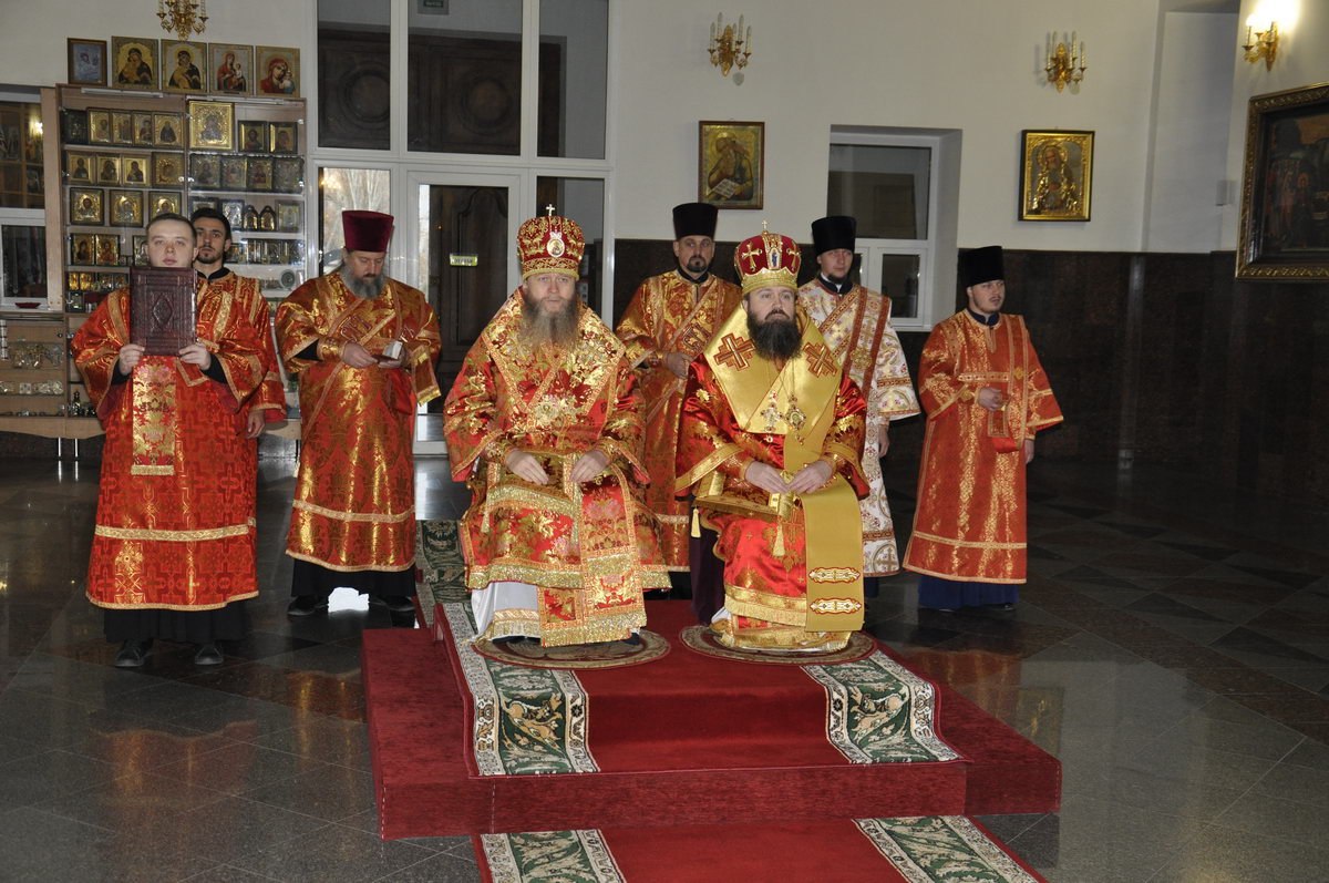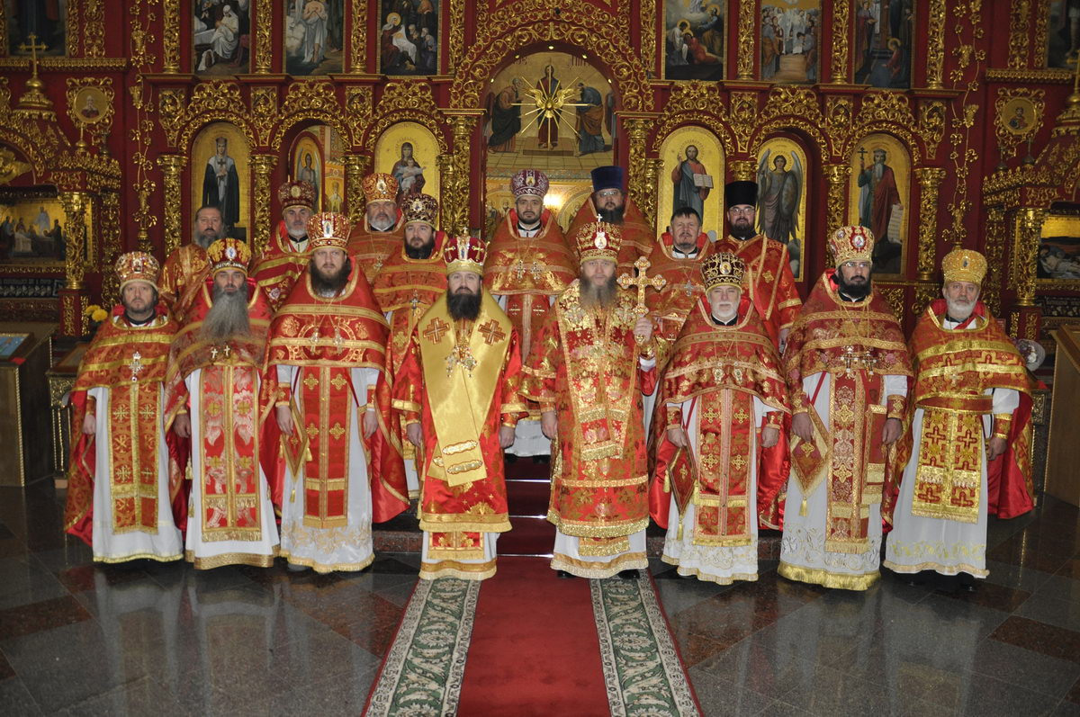 За Литургией Преосвященным архипастырям сослужил секретарь епархии прот. Андрей Зозуля, настоятель собора прот. Владимир Конончук, а также приглашенное духовенство.